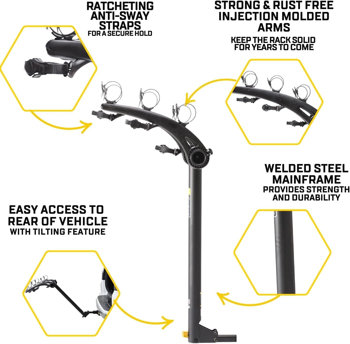- TILTING FEATURE FOR TRUNK ACCESS β Easily tilt the rack down for quick access to your vehicleβs trunk, even when bikes are loaded. No need to remove the rack for convenience.