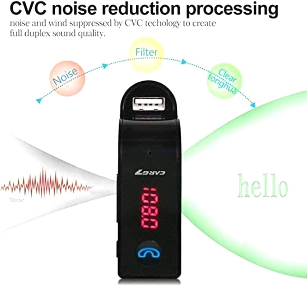 - 🚗【4 Modes Music Play,Excellent HI-FI Stereo Sound】Play music via USB Flash Drive and TF Card (support MP3/wma/wav/Flv format & support up to 32GB) with MP3 file; Play music with the 3.5MM aux cable; search ''G7'' Bluetooth in your device and connect.built-in microphone with Noise and wind suppressed by (CVC) technology to create full duplex sound quality.anti- statics design, enjoy the lossless music in your car.Micro phone range is 2meters.