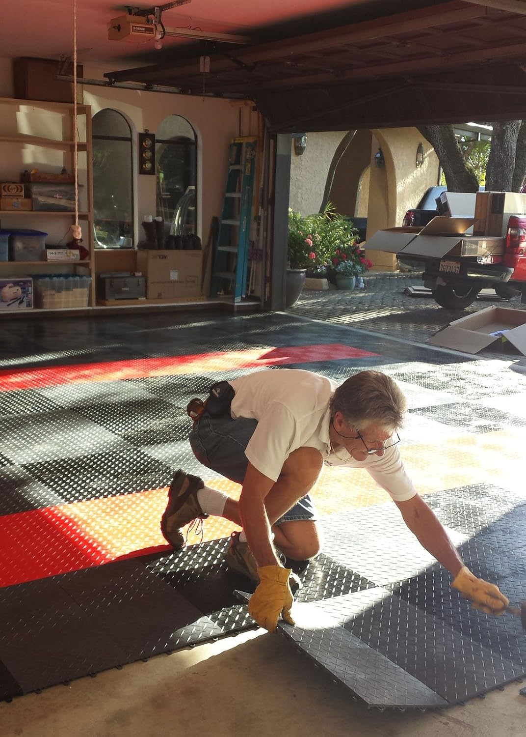 - SLIP RESISTANT AND EASY TO CLEAN: Unlike epoxy or other floor treatments, the diamond plate design provides great traction with little or no maintenance. The sturdy, durable surfaces wonβt stain and make clean-up a breeze. Car oil, dirt, dust, or other messes are no problem with a mop or shop vac.