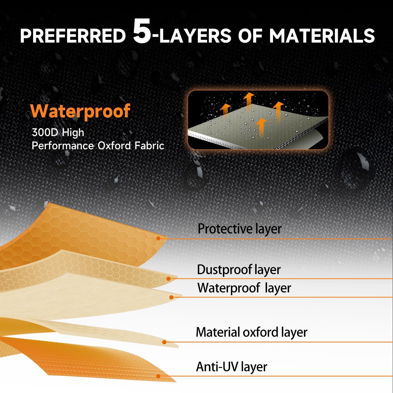 - [Durable & Attractive]: 300D High performance waterproof denier oxford cloth materials, keep the rain, wind, snow, sun, bird poop, tree sap, dirt or other element from causing havoc during outdoor and indoor