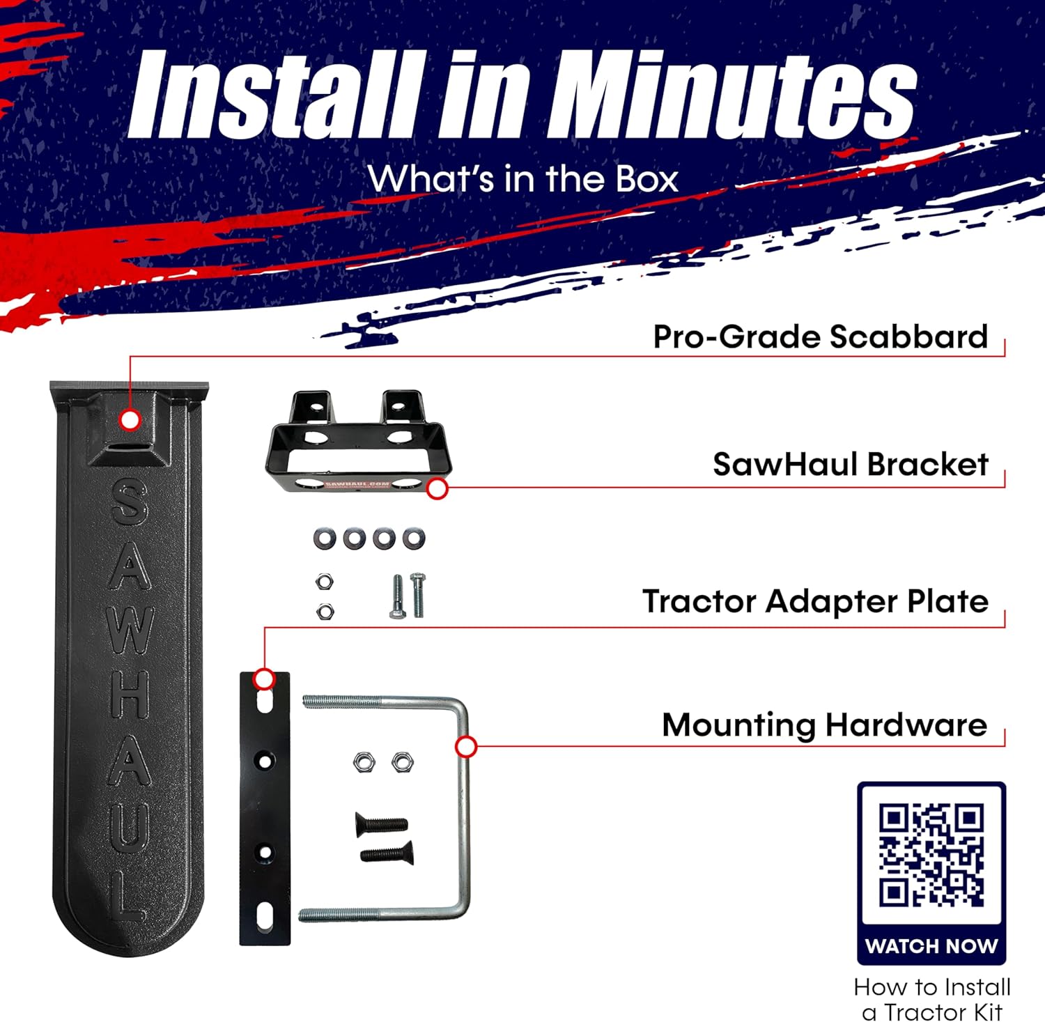 - PROTECT YOUR SAW AND YOUR TRACTOR. Transport with peace of mind using the SawHaul chainsaw mounting bracket, designed to safeguard your chainsaw and tractor from accidental damage. This chainsaw scabbard ensures secure storage during transit, minimizing wear and tear while reducing costly repairs.