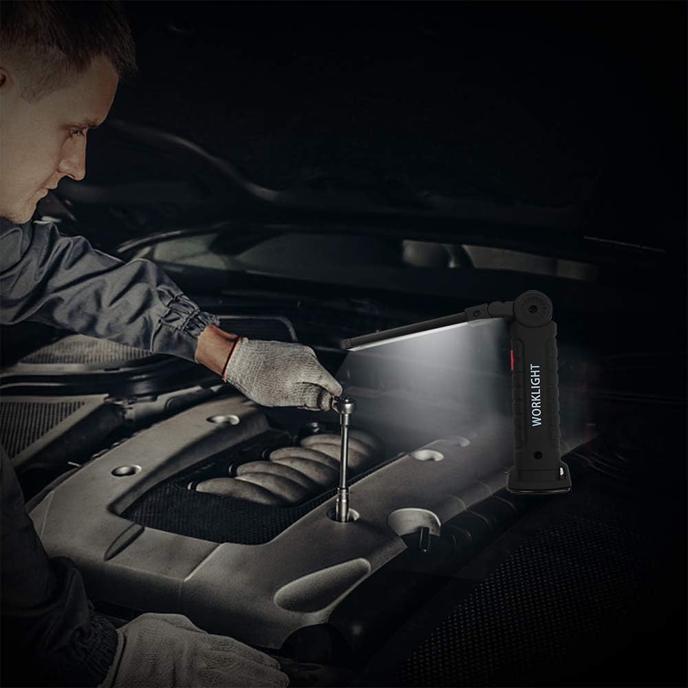 - Magnetic Base: The work light has a magnetic base for easy 360° rotation and stable positioning.