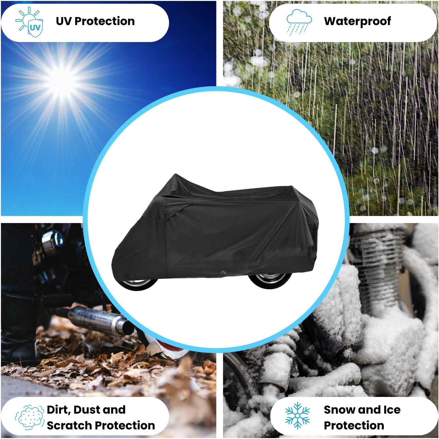 Deluxe Motorcycle Cover, Waterproof All Weather Outdoor Protection Universal Motorcycle Cover, Fade & Tear Proof Polyester fits Motorbike Scooter up to 80" L