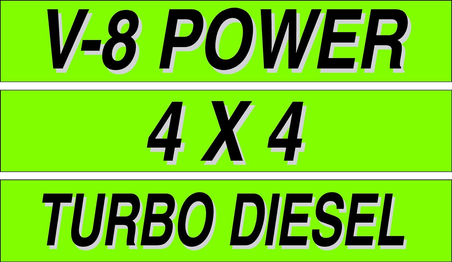 - V-8 Power, 4x4, Turbo Diesel Stickersπ₯ 1 Dozen Each, Car Lot Pro Pack 15" Slogans