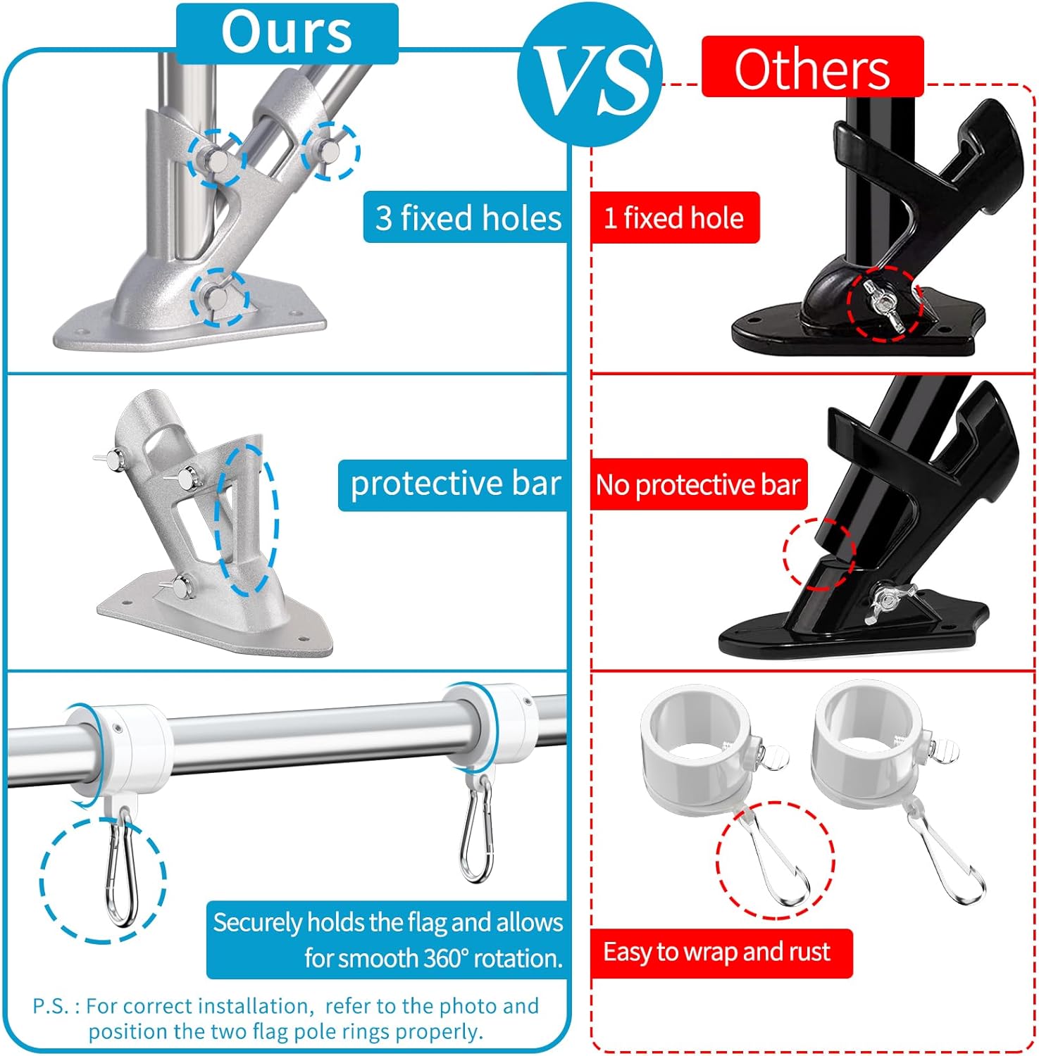 - Exquisite Design: 1*Flag Pole Diameter 1'', 1*Upgraded Bracket, 2*New Tangle Free Rings, 4*Carabiners, 1*Top Ball, 1*Installation Manual