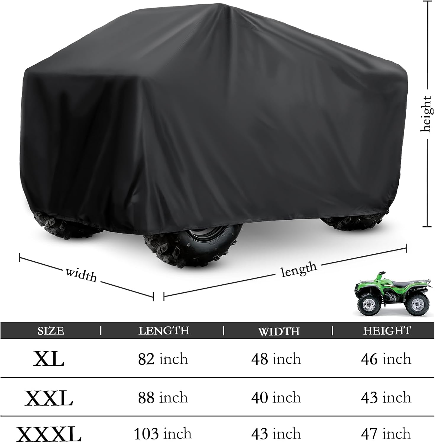 XYZCTEM Waterproof ATV Cover, Heavy Duty Black Protects 4 Wheeler from Snow Rain or Sun (Upgrade Material, 103 inch)