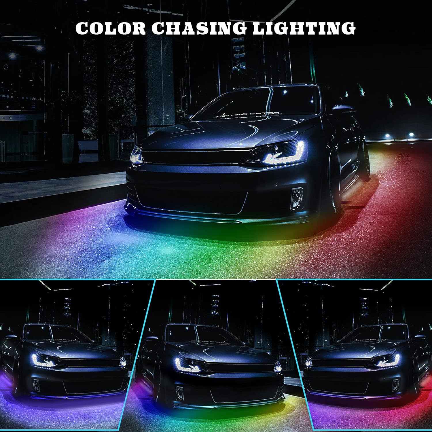 - ăMultiple Modes & DIYă-This Undercar Strips Lighting Kits have 10 Static modes, over 200 dynamic modes. with a built-in mic, your underglow car lights dance to the rhythm of your music, enjoy every beat of your favourite music when you are driving. The lights also with Breakpoint transfer function.