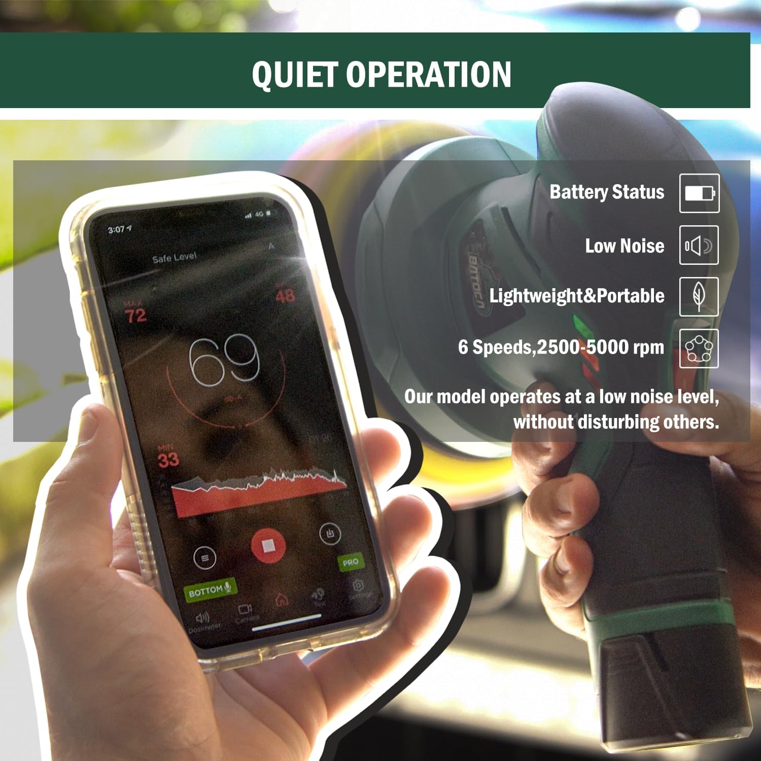 BATOCA - Cordless Car Buffer Polisher - 1pcs 2.0Ah 12V Lithium-ion Rechargeable Battery Powered Brushless Polisher with 6 Variable Speed, DA Orbital Buffer for Car Detailing, Polishing, Waxing