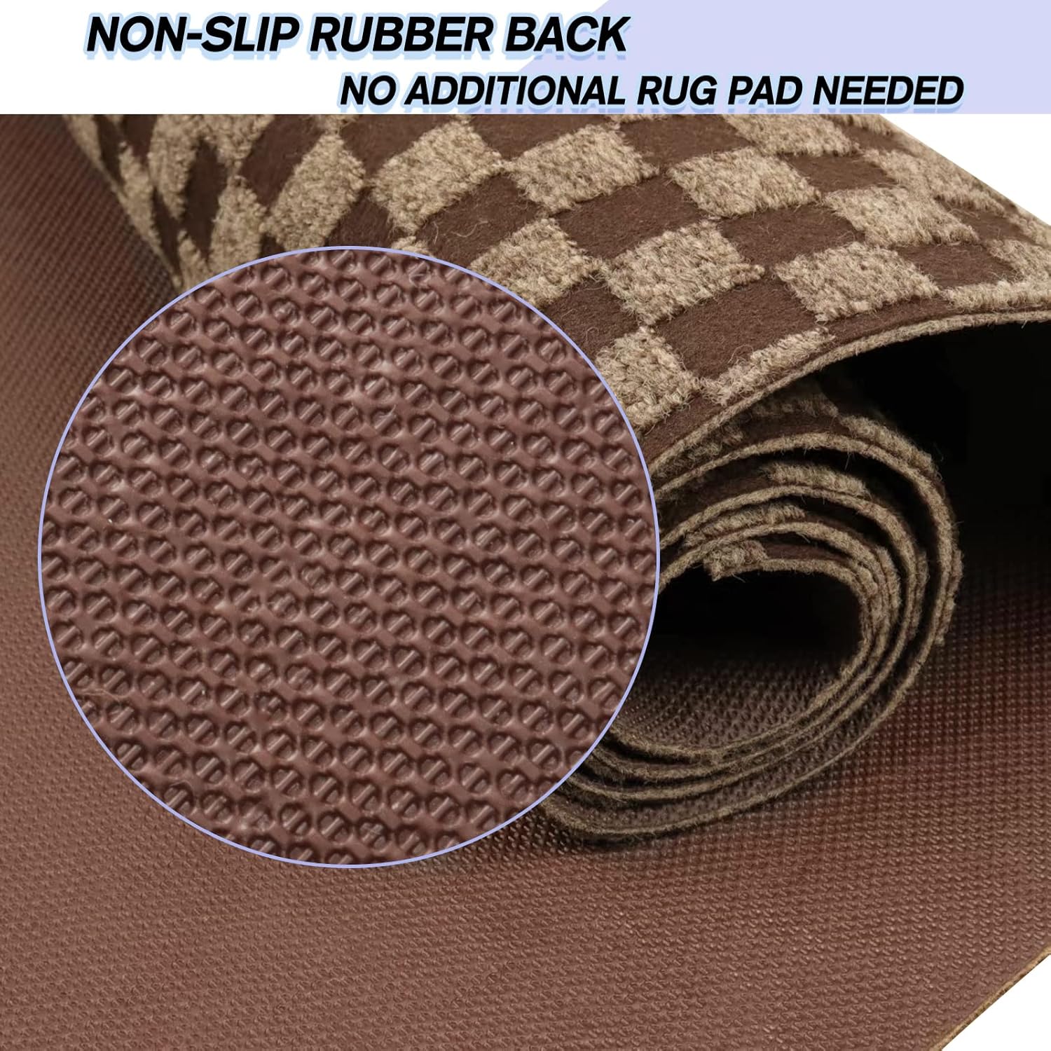 Custom Size Backed Non-Slip Area Rugs Runner, Easy Clean, Waterproof Runner Rugs for Hallway Entryway, Kitchen, Laundry, 3FT x 60FT, Brown Checkered