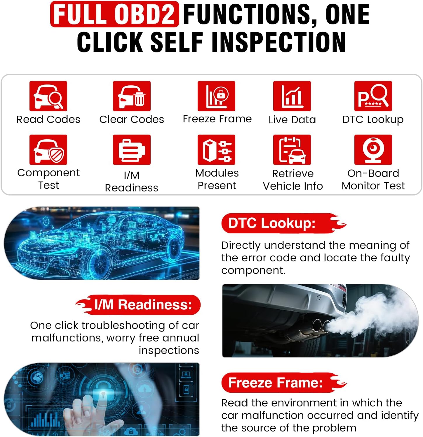 - ăFull OBD2 FunctionalityăThe IF742 scan toolâs DTC Lookup translates fault codes into clear insights instantly. Its I/M Readiness simplifies emissions checks with one click, while Freeze Frame rewinds to the faultâs exact moment for precise root-cause analysis. Complemented by a unified data stream dashboard and advanced diagnostics like O2S Monitor, OBMon Test, and EVAP TEST, it empowers you with comprehensive, multi-layered vehicle insights.