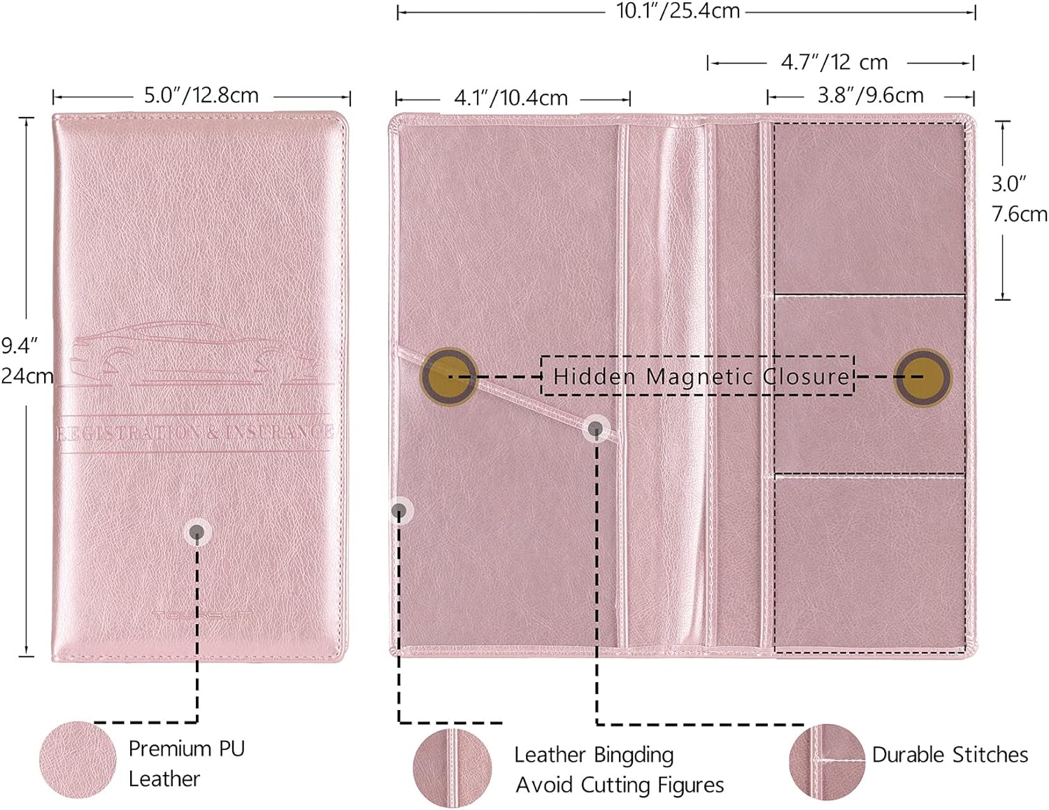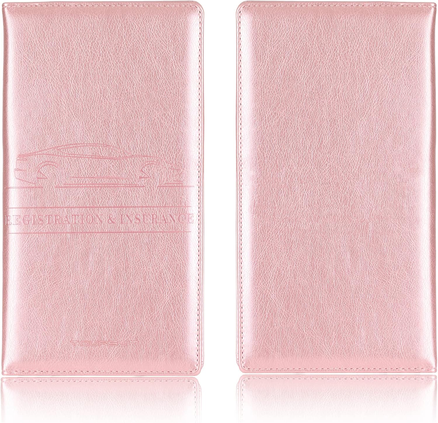 TOURSUIT Car Registration and Insurance Card Holder, Vehicle License Document Glove Box Compartment Organizer, Interior Car Accessories for Women Men Teens (Rose Gold)