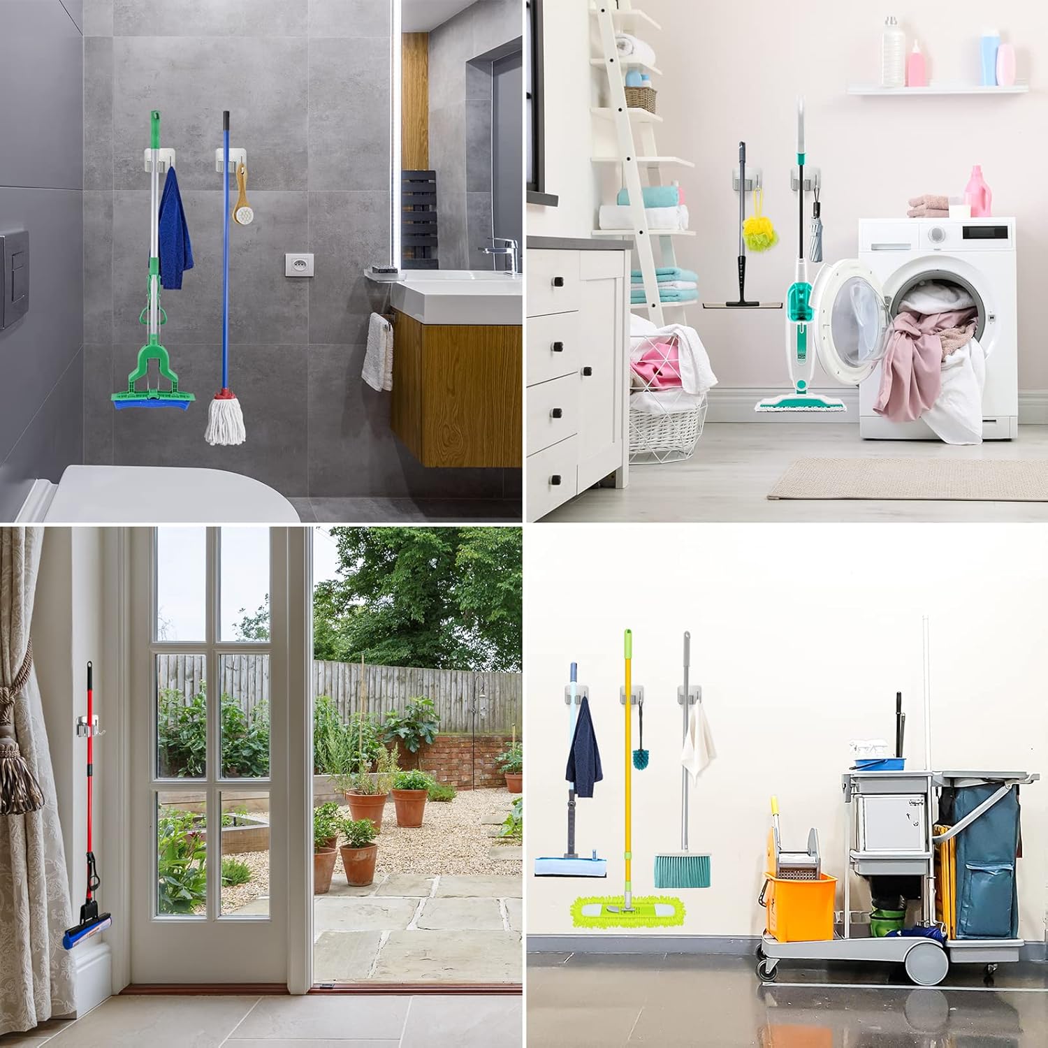 - Application: The mop rack wall mount is not just for mops and brooms; it's also perfect for hanging various small items like repair tools, umbrellas, kitchen supplies, and toilet brushes, making it an essential tool for everyday convenience