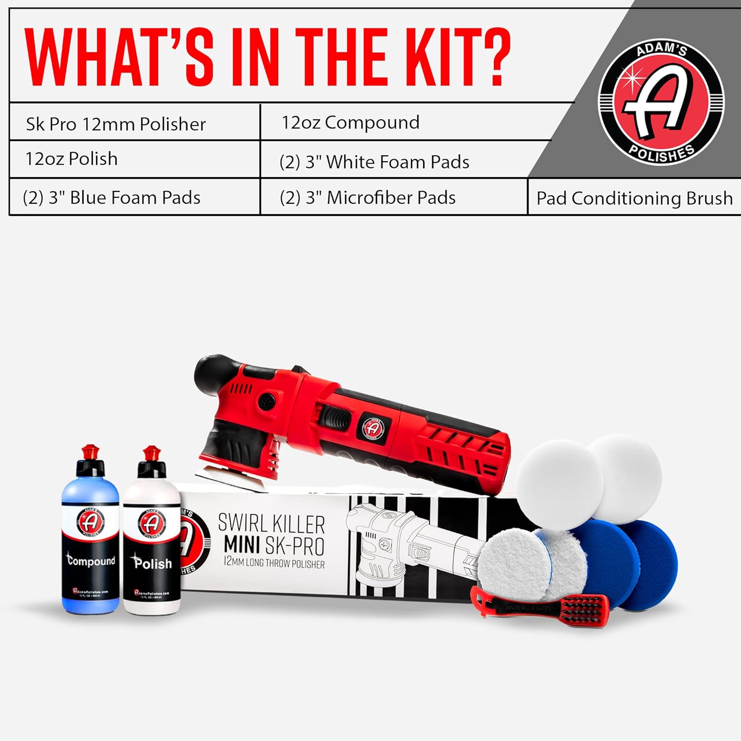 Adam's Polishes SK Pro 12mm Car Polisher Kit (10 Item) - Professional Dual Action Polisher for Car Detailing - Paint Correction, Waxer Buffer DA Polisher - Variable Speed Car Polisher System
