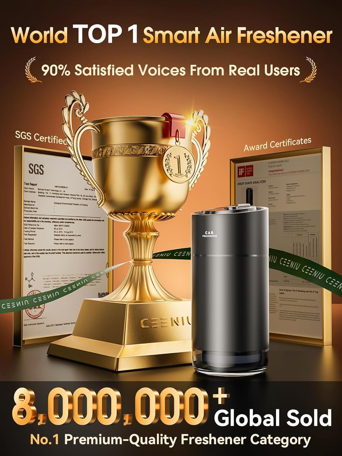 - 【Premium, Durable Quality】Our car freshener made with aluminum alloy exterior and dual-leak prevention. Also, 1 year CeeniuCare can quick responses any product issues within 12 hours. It makes us trusted by over 800,000 drivers worldwide