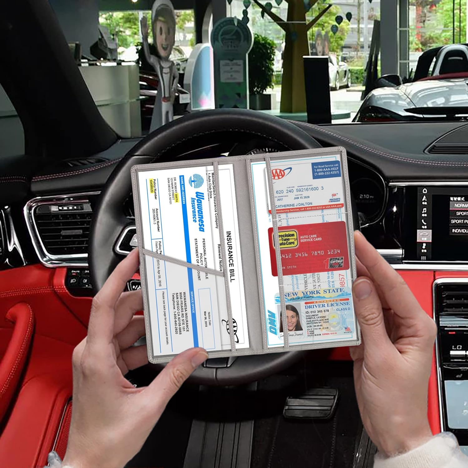 - 👁️Quick Accessible: Inside the car insurance and registration card holder, the clear inner material makes you easy to find documents when you open it up, you can see exactly what they are and quickly show them when asked, even no need to take the stuff out.