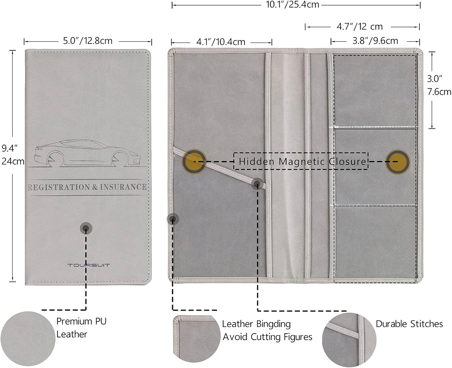 TOURSUIT Car Registration and Insurance Card Holder, Vehicle License Document Glove Box Compartment Organizer, Interior Car Accessories for Women Men Teens (Grey)