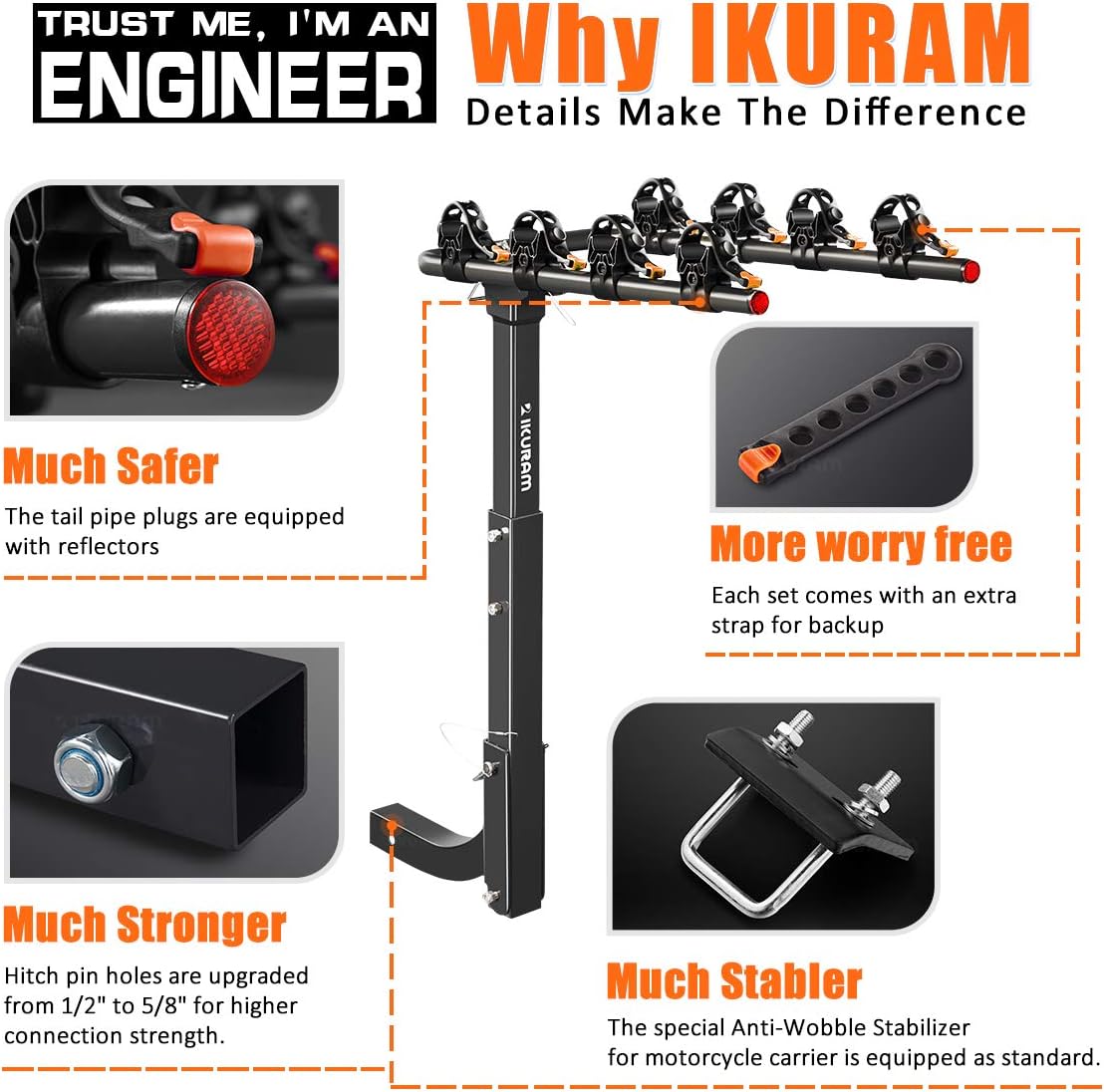 - Rigid All Steel Constructed Bike Hitch Rack: Long-lasting and durable all steel construction with protective powder paint finish.