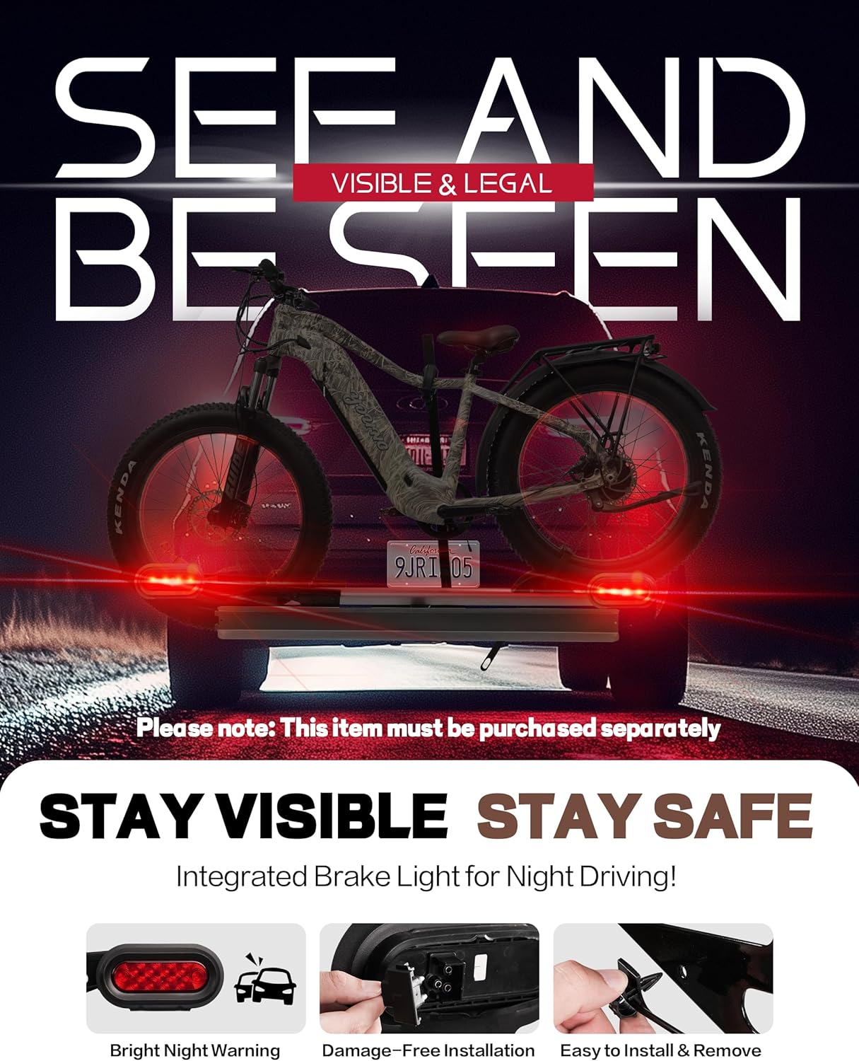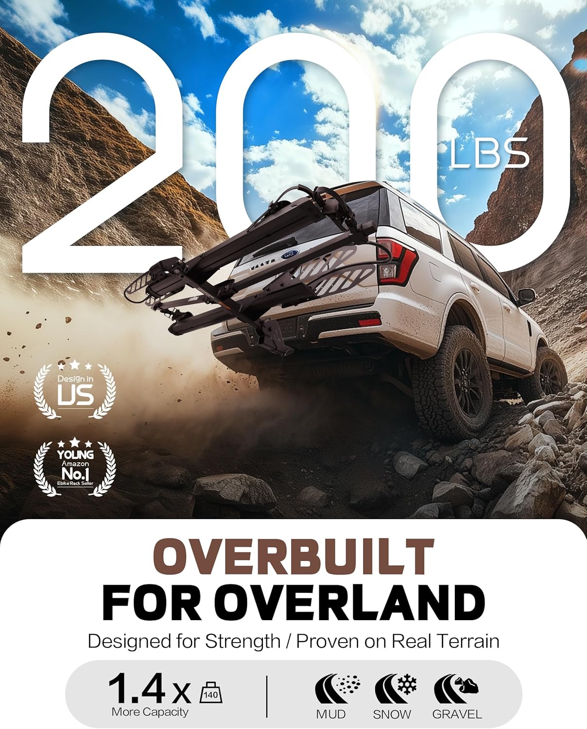 - 200LBS CAPACITY & V-GROOVE RAMP: The latest electric bike rack features an upgrade V-groove ramp for easy loading 2 electric bikes or bikes of up to 200lbs in total (100lbs per bike). Fits tires up to 5" wide and wheelbases up to 50". Compatible with any vehicle with a 2-inch receiver, no extra bar needed for step-thru heavy duty electric bikes or bikes.