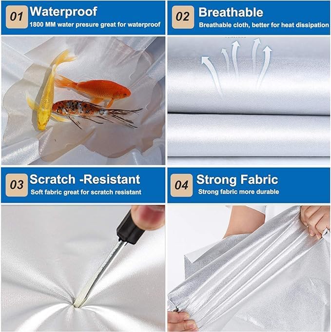 - ăUpgraded Materială--KouKou multi-layer covers adopt newest heavy duty and secure materials. It is 100% Waterproof, great for rainproof snowproof in winter. Highly reflective aluminum fabric is good at sunproof, anti-Uv and keeps cool in summer. The inner lining is soft cotton that would protect car paint better.