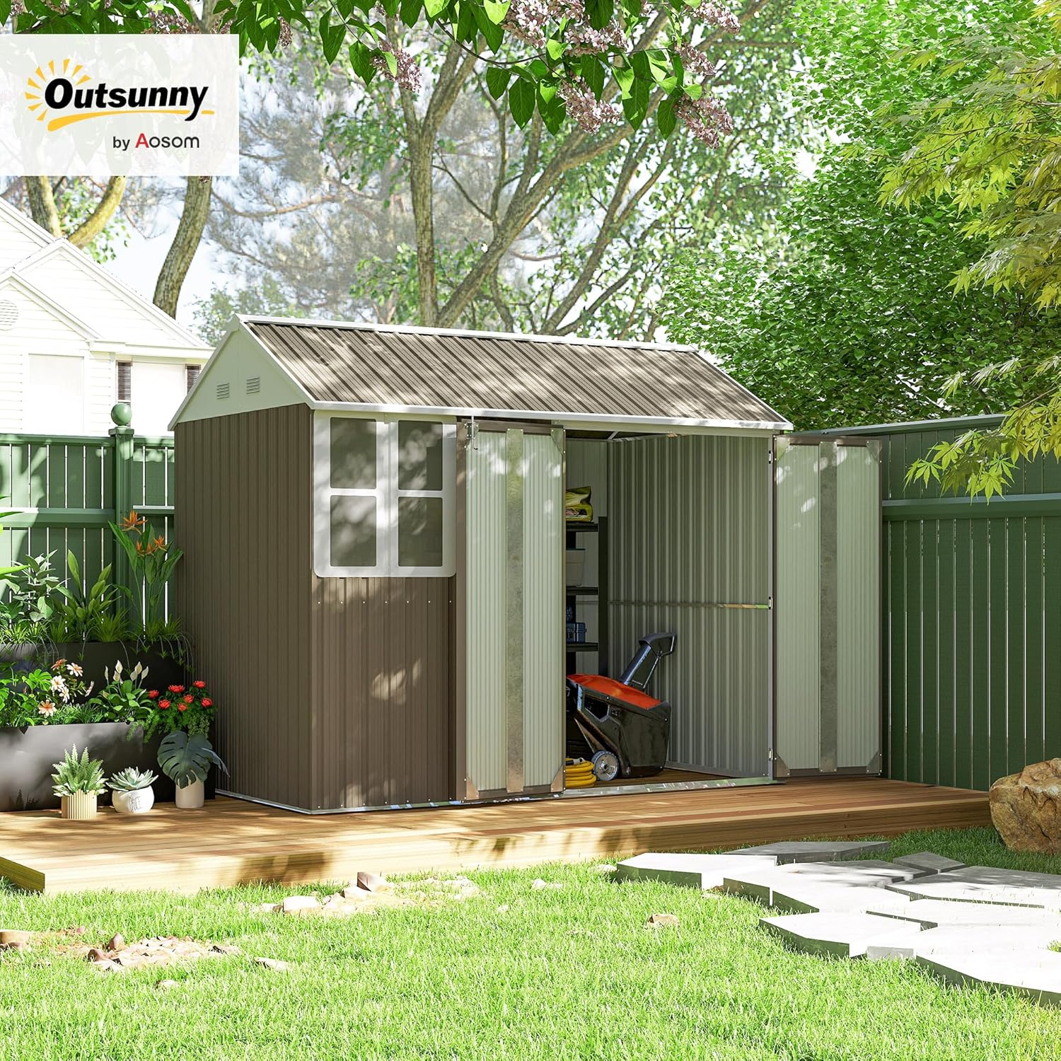 - Extra Large Garden Shed: Our extra-large metal storage shed offers 48 square feet and high walls for more than enough room for the tallest of tools. House your lawn mower, ATV, or snowmobile and drive them right out the front doors.