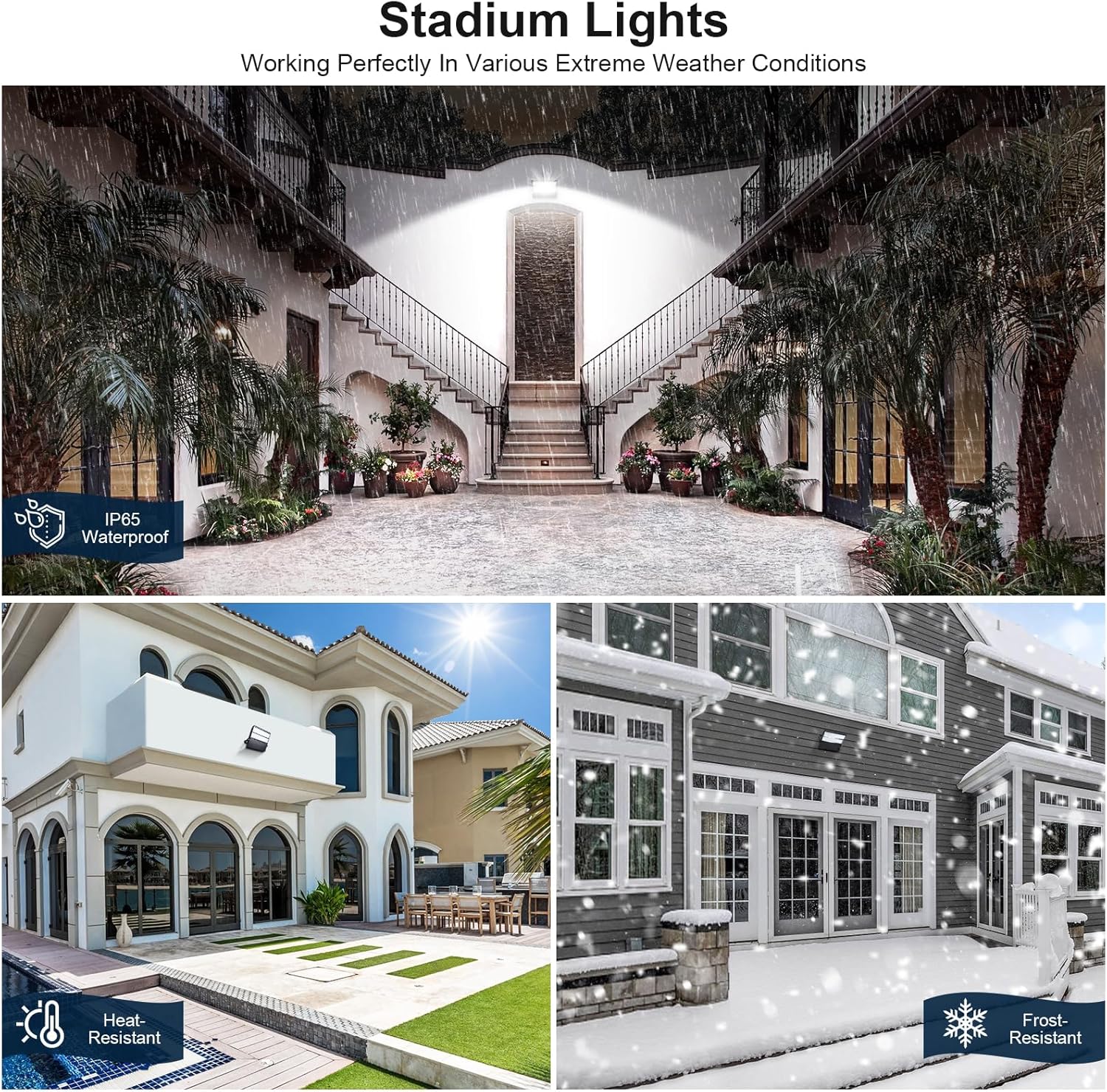 - Heavy Duty High Quality Outdoor Lighting- With precise structure and strong impact resistance, polycarbonate lenses effectively prevent glare and flicker, protect the eyes, and are ideal lighting for large sports venues and courtyards, such as parking lots, basketball courts, tennis courts, football fields, backyards, or other areas that require high brightness. Just need one commercial sports stadium light to meet your needs
