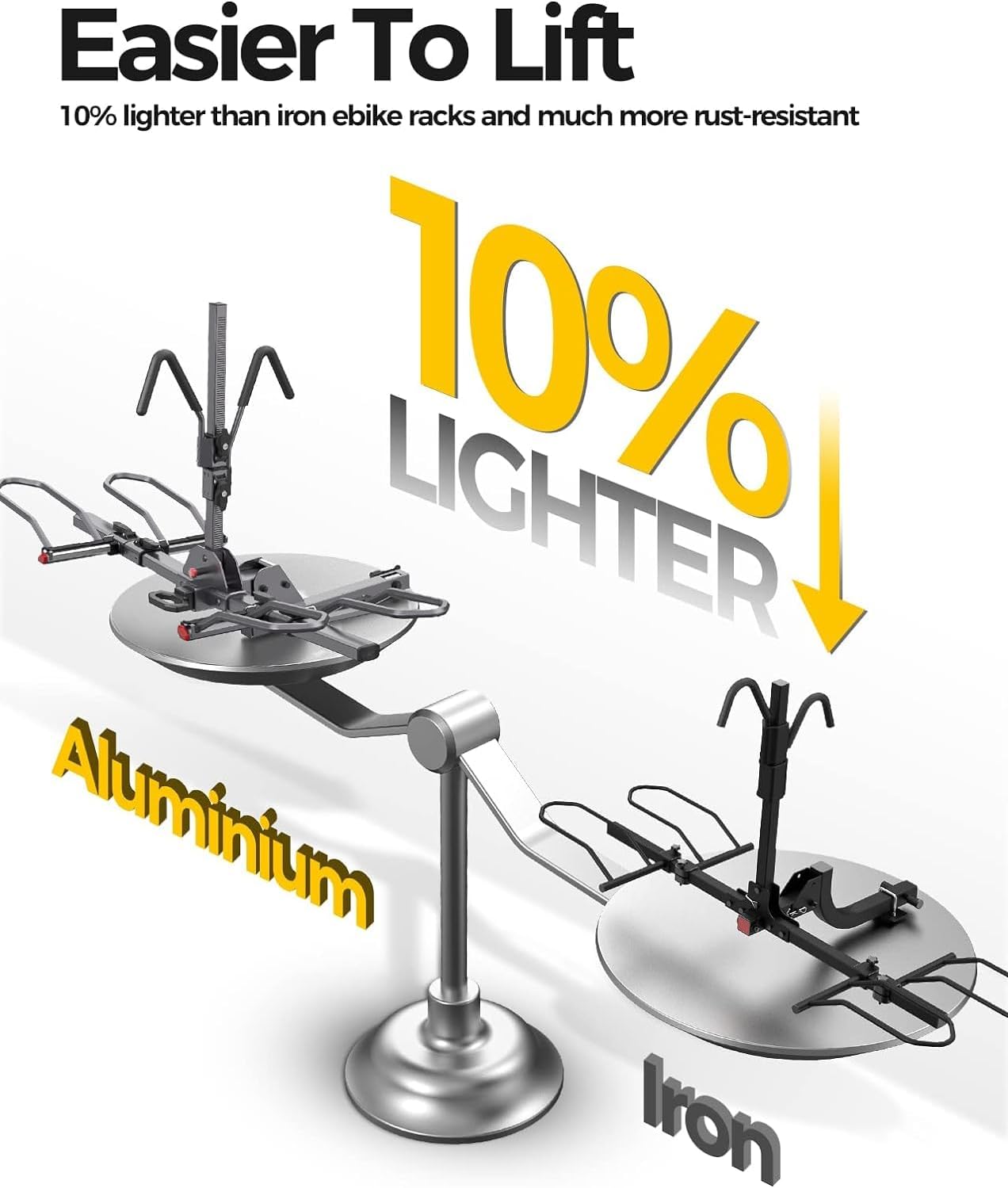 - ăLightweight and Rust-Proof AluminumăMade from aluminum, this rack is lighter than steel for easy handling and resists rust for lasting durability in any weather.