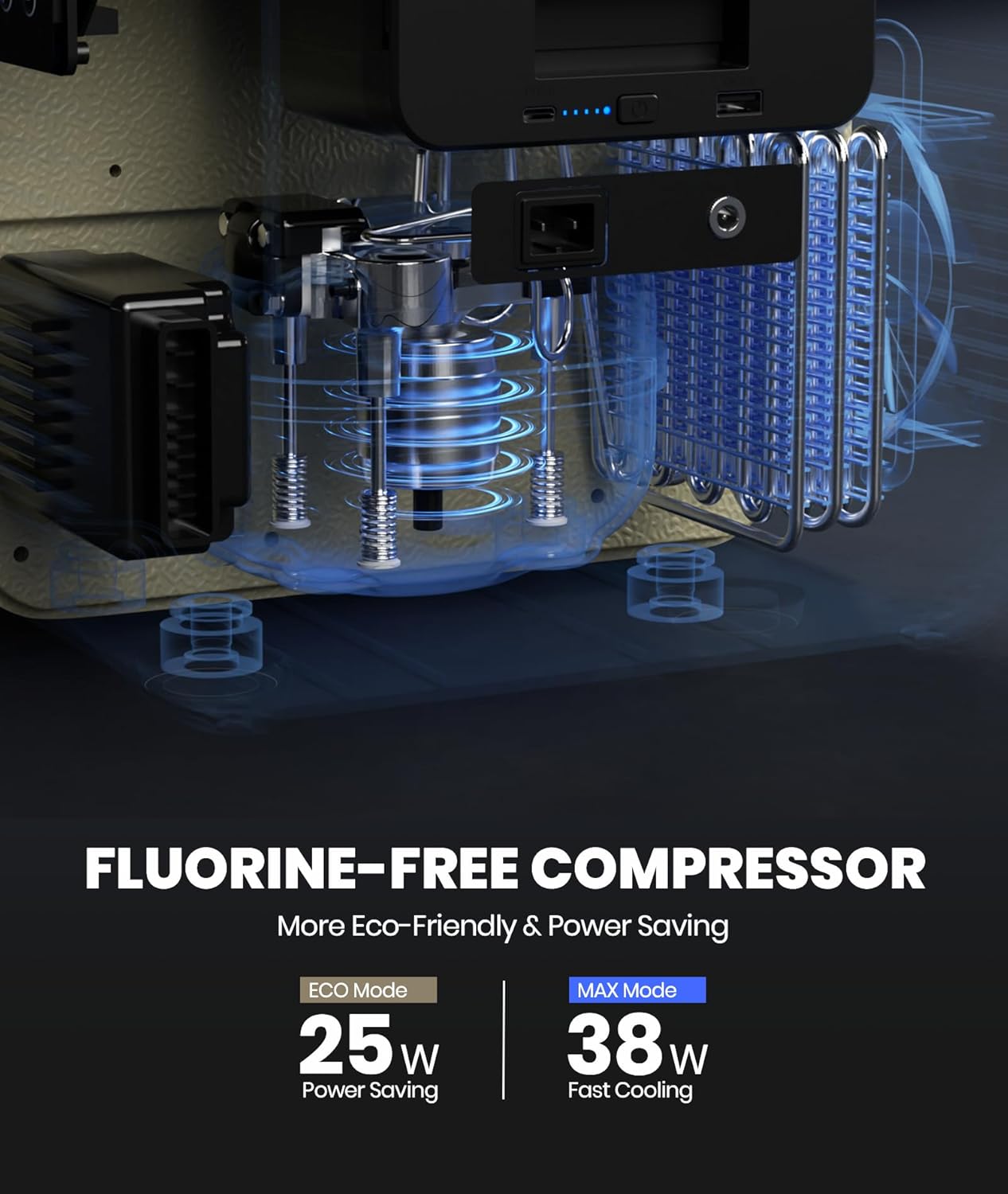 - 10 Mins Cooling down to 32 ℉: The powerful fluorine-free compressor ensures fast cooling down from 77 ℉ to 32 ℉ in just 10 mins and 77 ℉ to -4 ℉ in just 25 mins. The thickened EPDM interior (appro.2") provides better insulation and sealing than common portable freezers on the market. Even if the refrigerator is powered off, it can keep cool for a few hours like a cooler box