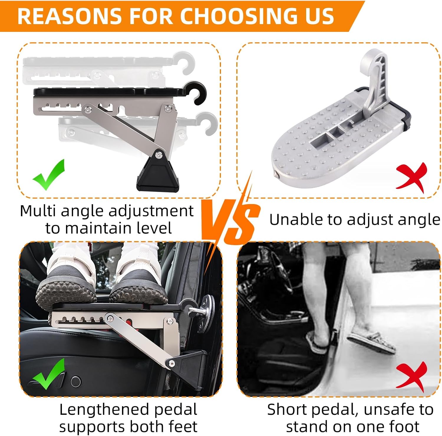 - High Quality Material: This car door step is made of aluminum alloy and high-quality stainless steel which is hard enough, sturdy and durable, the maximum load capacity can reach 400lbs.