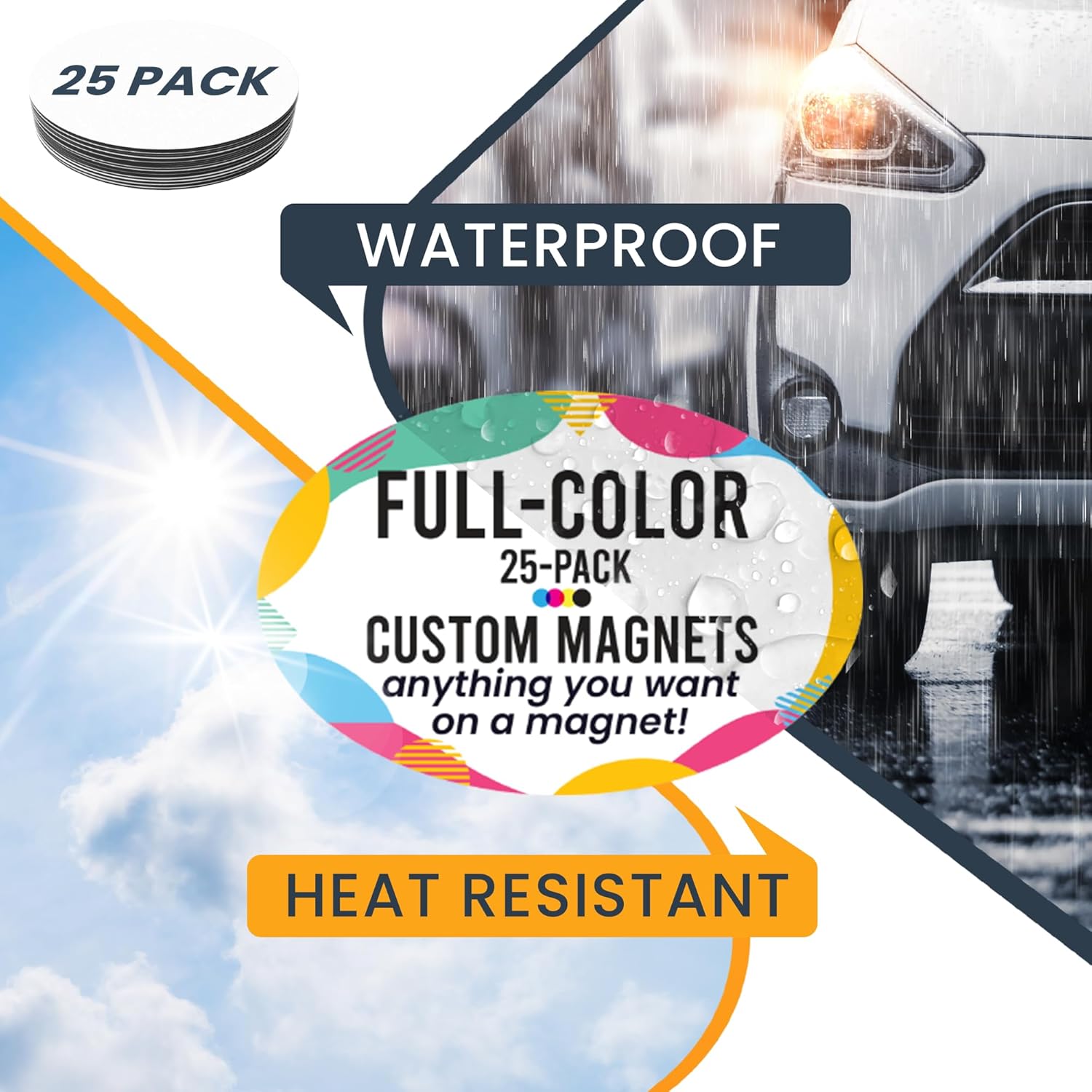 Magnet Me Up Customizable 4x6 Inch Oval Magnet Pack, 25 Piece, Custom Magnet for Businesses, Personal Use, Choose Your Text, Upload Image, Magnetic Vinyl for Any Magnetic Surface, Crafted in USA