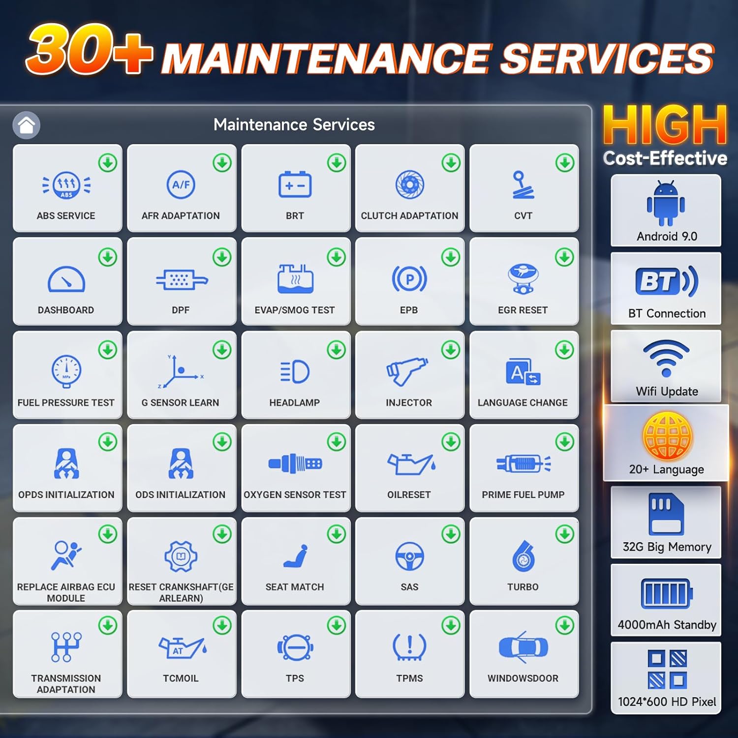 - 【30 Maintenance & 3-Year Free Updates】NT809BT assists you with common and essential reset tasks like ABS Bleeding, Oil Light Reset, EPB Reset, SAS Calibration, Throttle Matching, Injector Coding, D-PF Regeneration, TPMS Reset, Windows-Door, Transmission Adaptation, Suspension Reset, Battery Registration, and more. It offers 2 extra years of free software updates compared to the standard 1-year period from others. You can keep using it and get lifetime tech support after the update period ends.