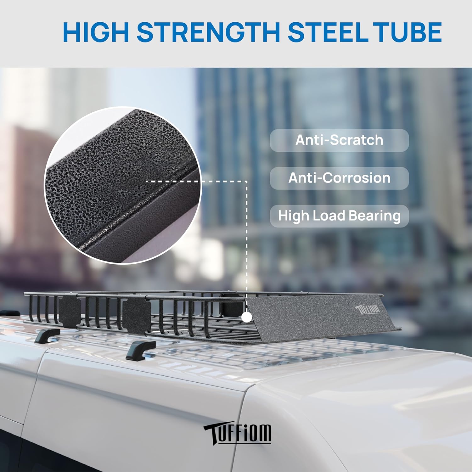 TUFFIOM 64"x 39"x 6" Universal Rooftop Cargo Carrier Basket, Extendable Steel Roof Rack Basket w/Net+Storage Bag+Pedal+Straps, Heavy Duty Car Top Rack Luggage Holder Carrier for SUV Car Truck Van
