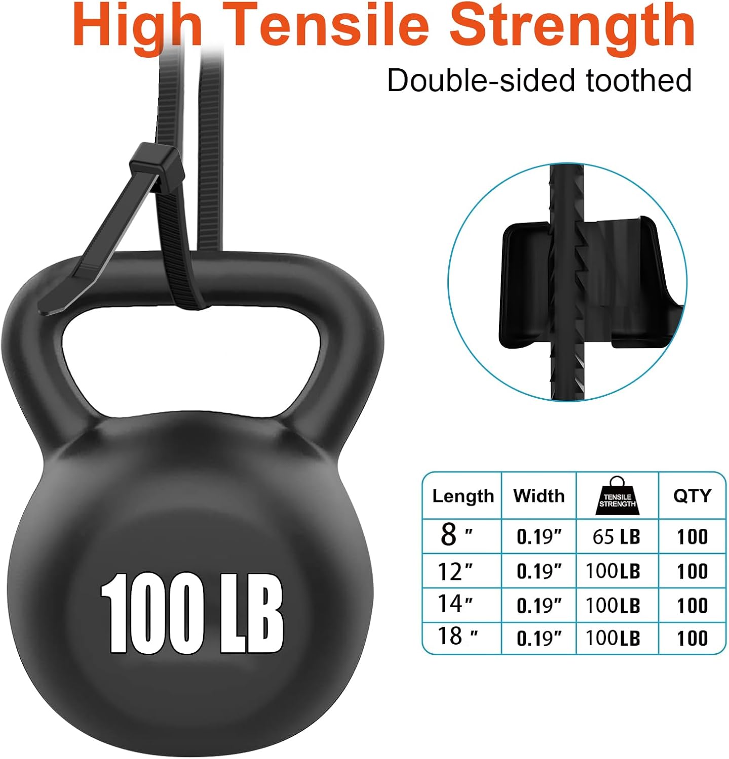 - 【100lb Tensile Strength】: The more width and Thickness, the more tensile strength. our zip ties 12 inch width is 0.19 inch(4.8mm), while industry standard is 0.14 inch(3.6mm), our zip ties 12 inch Thickness is 0.065" inch(1.65 mm), while industry standard is 0.05 inch(1.25mm),more tensile strength.