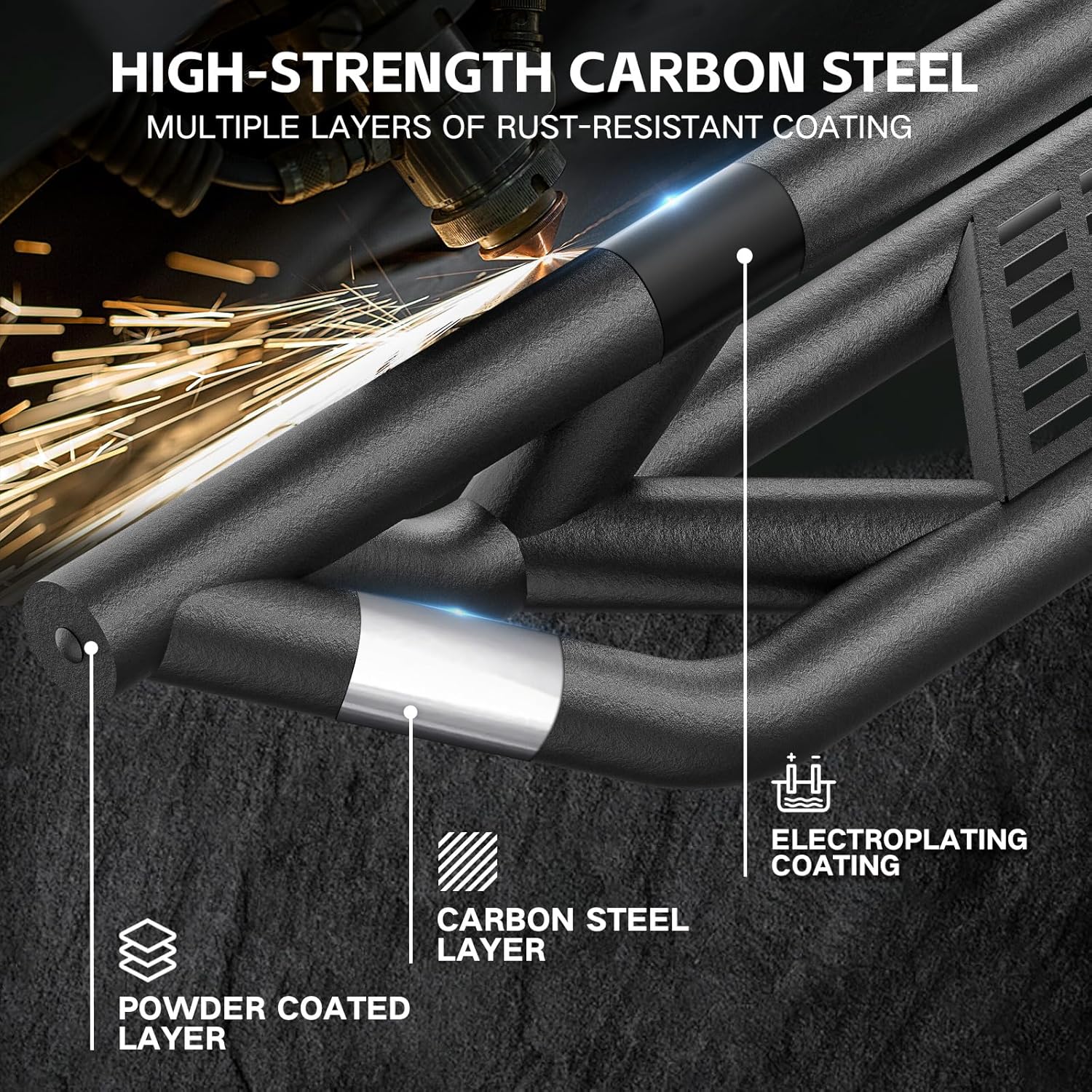 - 【Durability】: Constructed from heavy-duty 2.0" tubular steel, with a dual-beam system that offers maximum protection from the bottom. Can withstand a weight of up to 550 pounds. Features a textured powder coating for excellent rust and corrosion resistance.