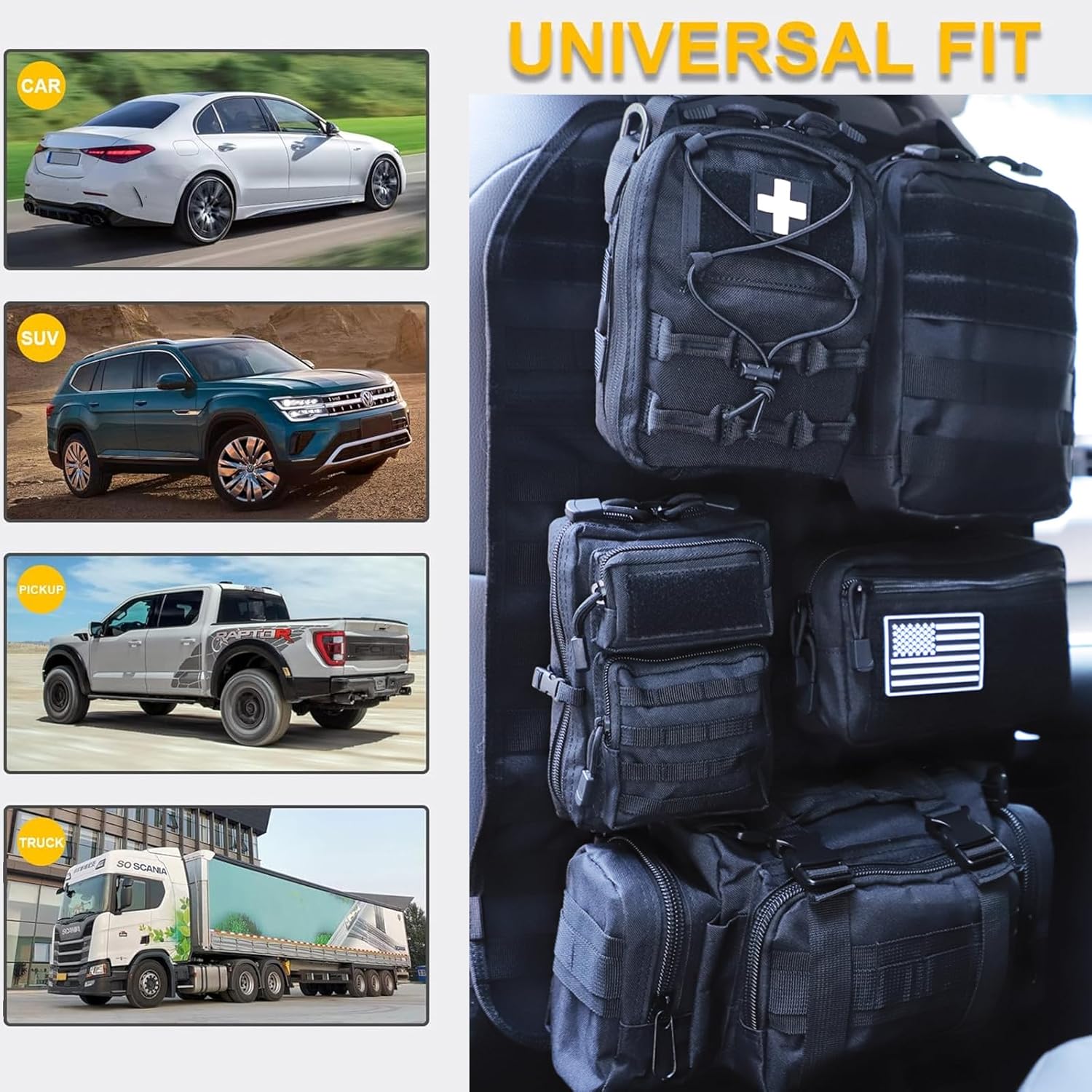 - 🚗 Universal Fitment - Universal Tactical Seat Back Organizer for All Vehicel Such as Jeep,Truck,SUV, Car, Ford,Chevy,Toyota etc.