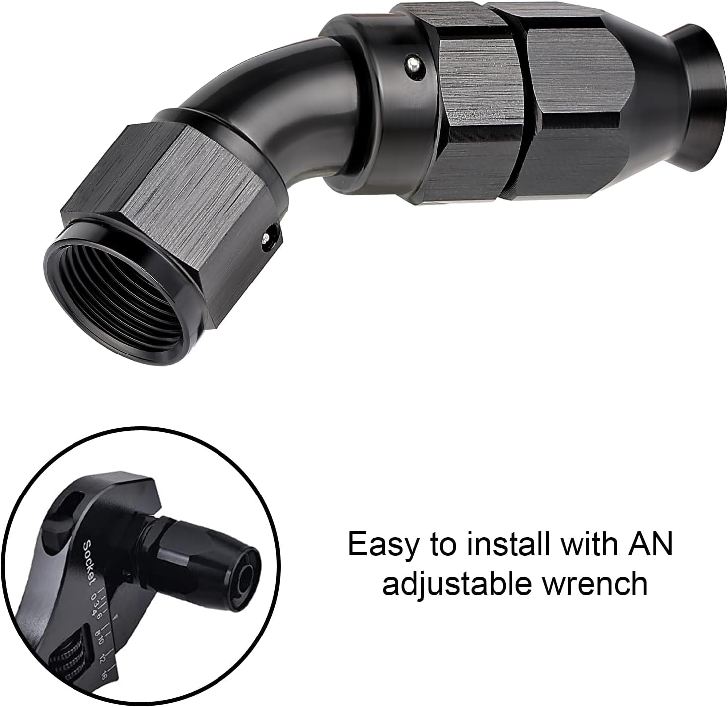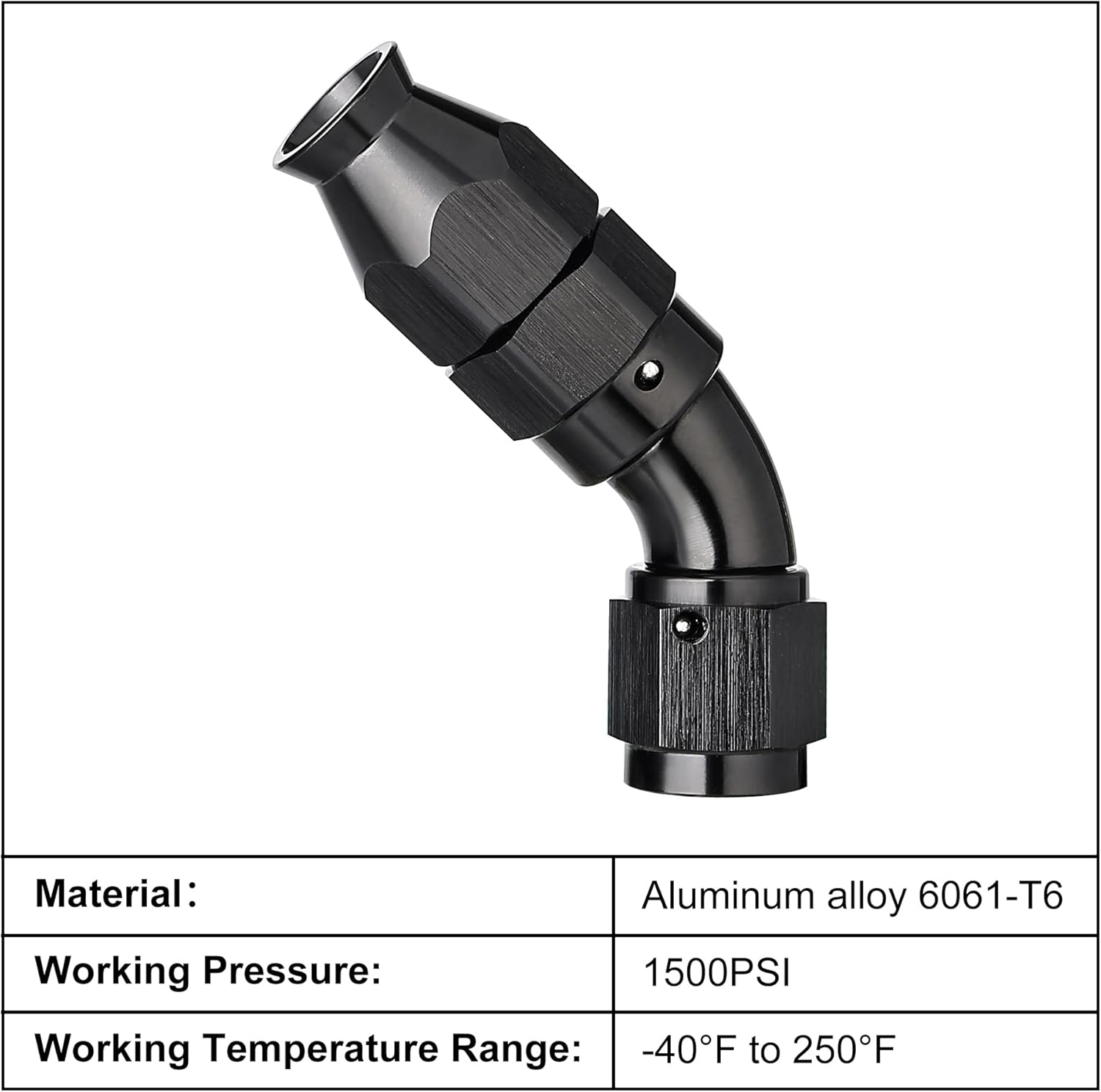 - [Product Size & Parameter] Size: 4AN. Thread Size: 7/16-20 UNF. Working Pressure: 1500PSI. Working Temperature Range: -40°F-250°F. Angle: 45 Degrees. Note: Please verify the hose size before purchase.