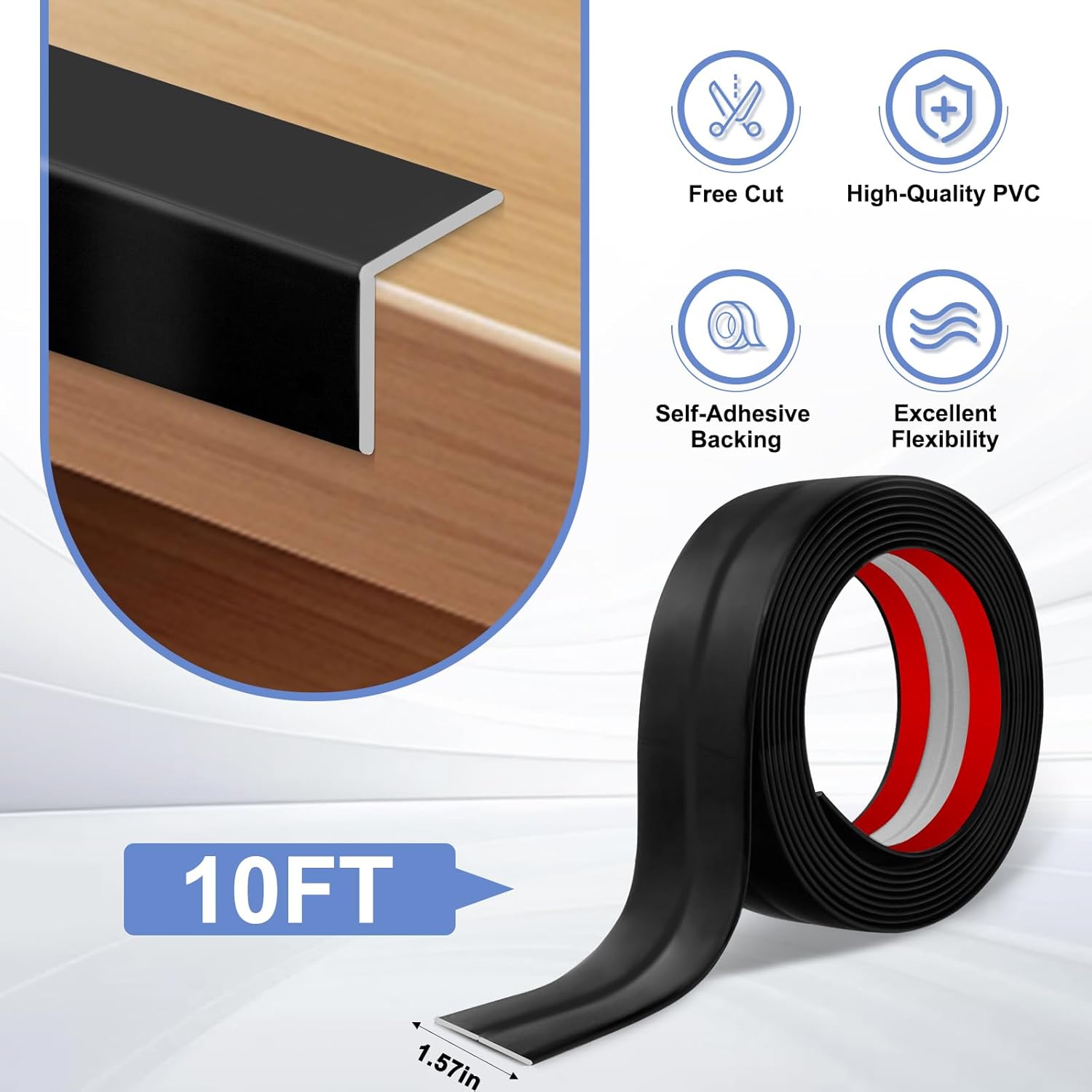 - 4. Quick & Easy Installation: Say goodbye to complicated installations! Simply clean and dry your wall, measure, cut to size, position, peel off the backing tape, and press firmly for a secure fit. Our strong adhesive backing ensures hassle-free installation of corner protectors.