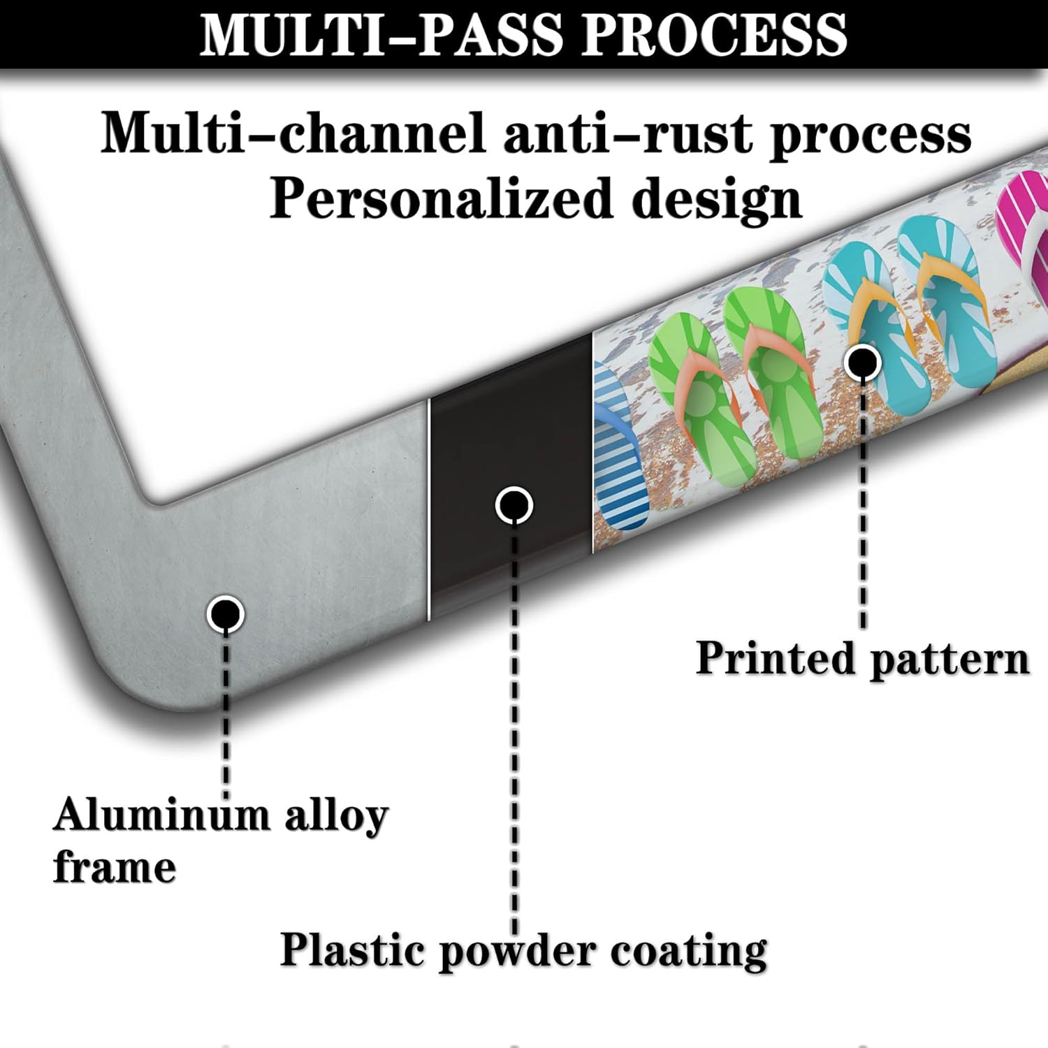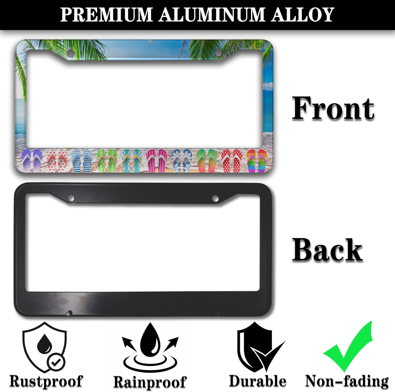 License Plate Frames Multicolor Car License Plate Frame Hawaii Beach Flip Flops Aluminum Metal Car Accessory 2 Pack with Screw Covers Set