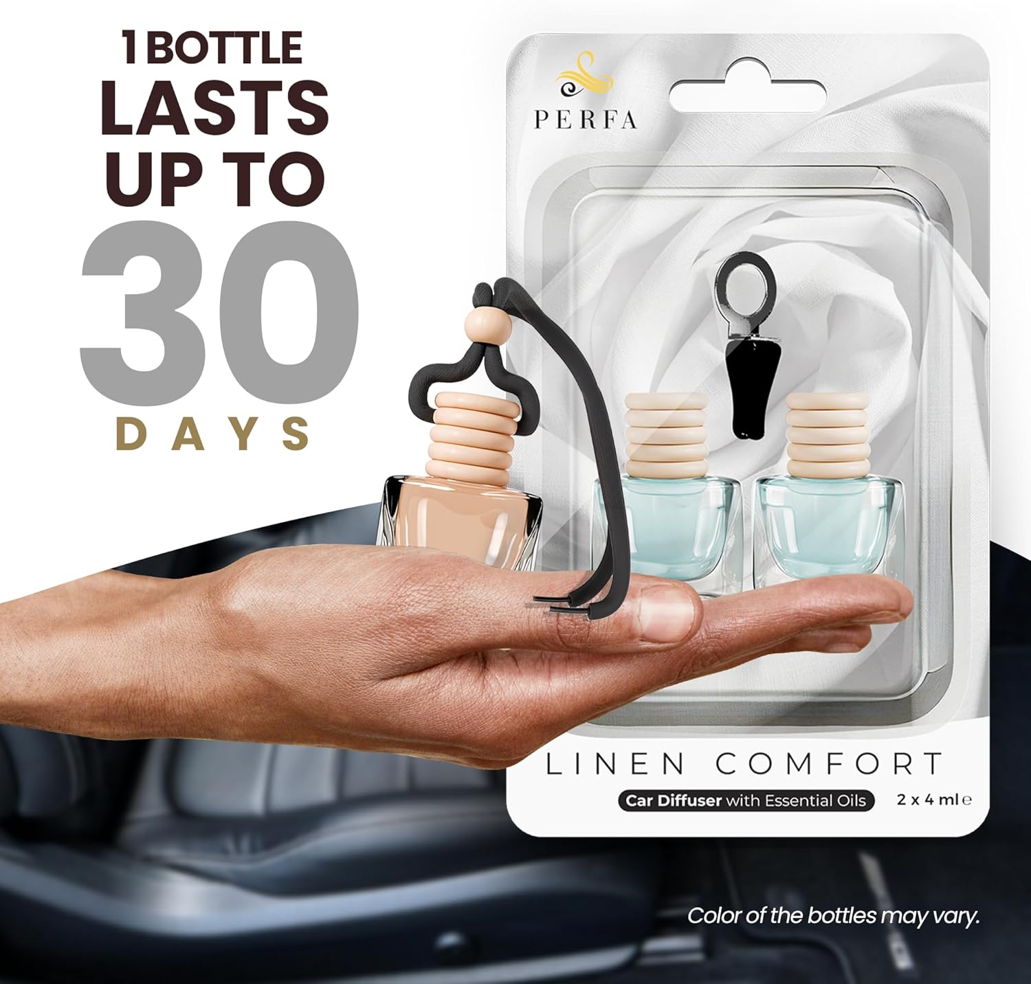 Car Air Fresheners - Linen Comfort Car Air Freshener for Men and Women | Pack of 2 Long Lasting Automotive Air Freshener | Odor Eliminator Car Perfume | Car Air Freshener Vent Clip by Perfa