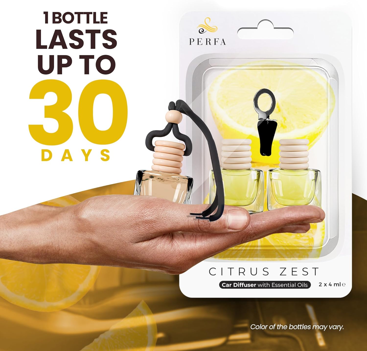 - CITRUS SCENT - Our car fresheners for men and women releases the aroma of citrus zest. This car scent diffuser fills your vehicle with a juicy and invigorating fragrance, creating a pleasant atmosphere every time you drive. Designed to double as a new car smell air freshener, it also helps eliminate unwanted odors, making it the perfect addition to your collection of car scents.