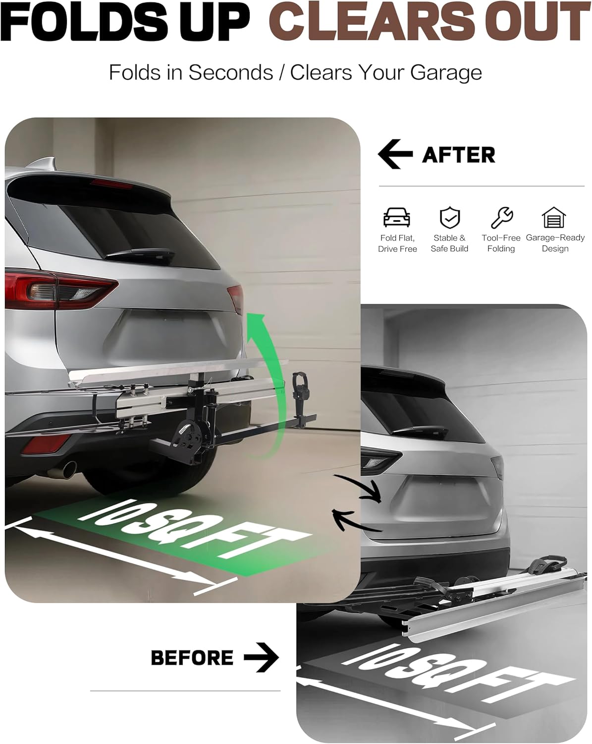 - 100 LB TOTAL CAPACITY: Built for durability and strength, this bike rack boasts an impressive 100lbs capacity, securely accommodating heavier electric bikes or multiple conventional bicycles with ease. Trust in its robust construction for reliable, strain-free transportation.