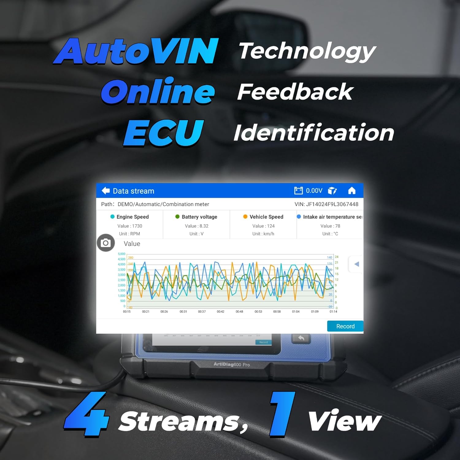 - ADVANCED AUTOVIN & ECU IDENTIFICATION: OBD2 scanner ArtiDiag600 Pro featuring smart AutoVIN technology automatically detects your vehicle's VIN, ECU name, ECU identifier, and ECU serial number, speeding up the diagnostic process and ensuring system compatibility. This feature streamlines initial setup, helps improve efficiency and accuracy