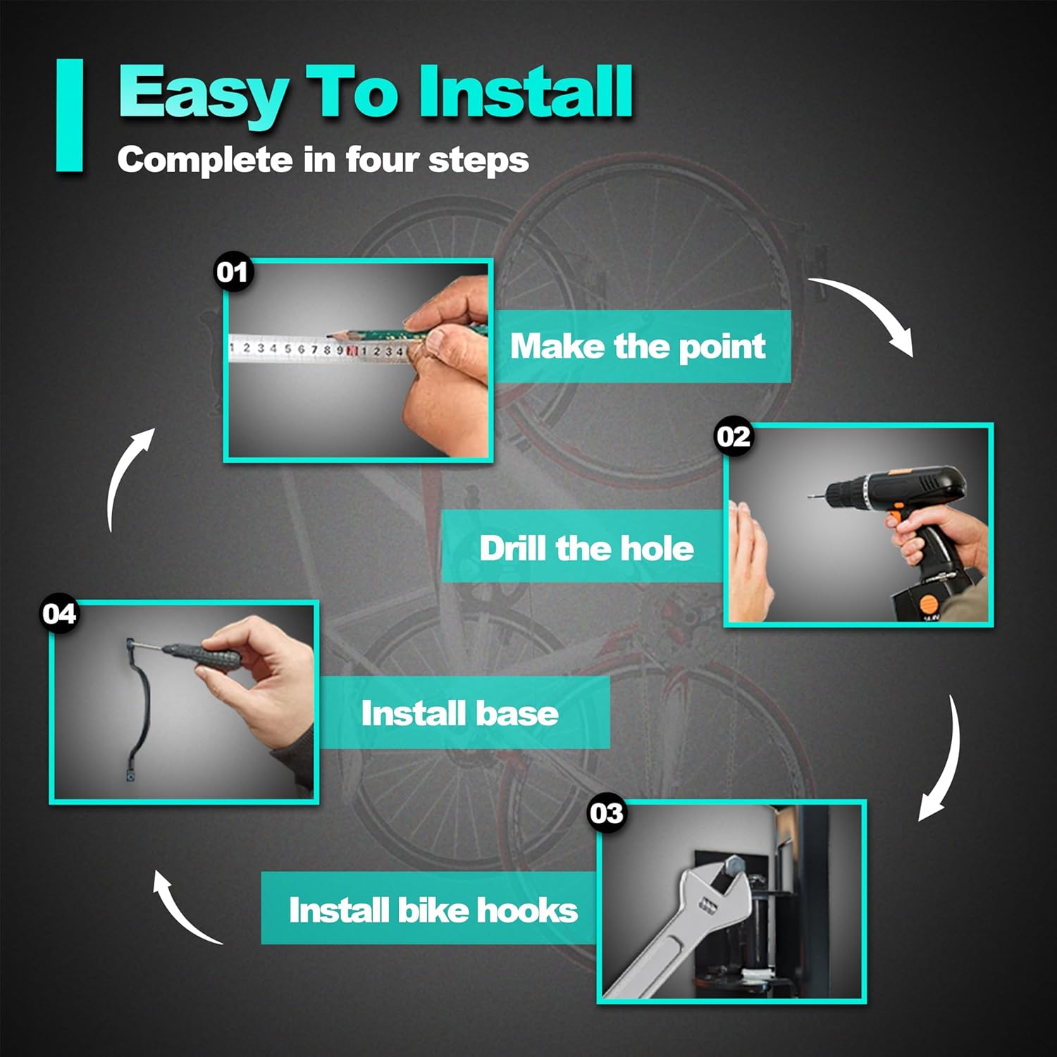 - [High-Quality Materials] Bike storage hooks are made of heavy-duty steel, with industrial-grade black powder coating for corrosion and rust resistance. Assembled with high quality welding process, the metal structure is durable and has no fragile plastic parts.