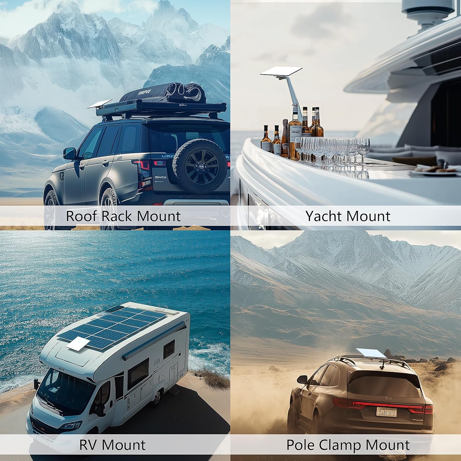 - 【Heavy-Duty Mounting Kit】:Top-grade aluminum alloy construction delivers 500 lb load capacity, ensuring secure installation in extreme weather. Reinforced screws and streamlined design provide unmatched stability for RVs, boats, or off-grid setups.