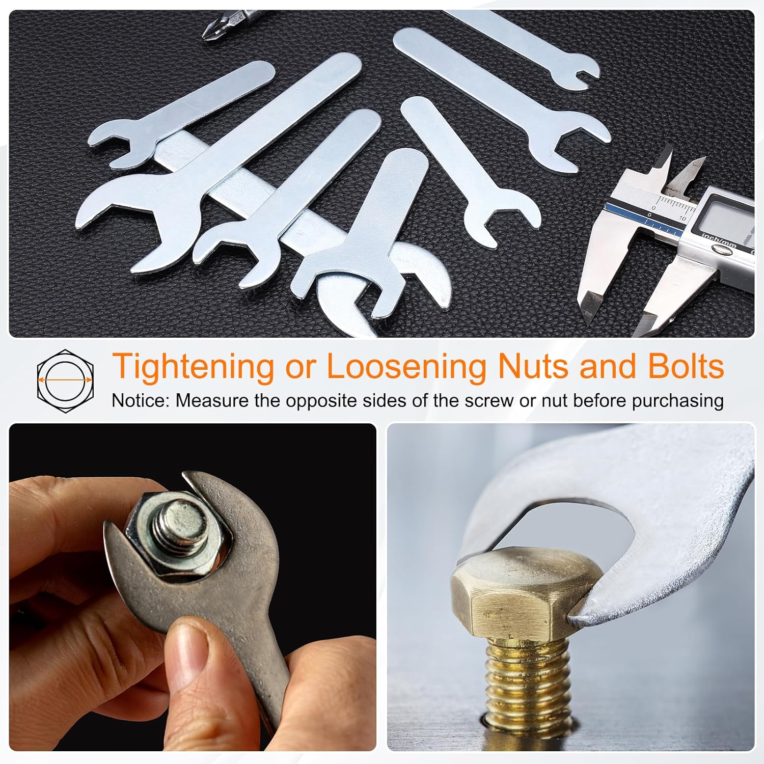- Long Lasting - Our single open-end wrench is made of an iron plate, which has high hardness and excellent corrosion resistance. The surface galvanizing improves its wear resistance, keeps its surface smooth and reduces wear, is not easy to deform, and can be used for a long time.
