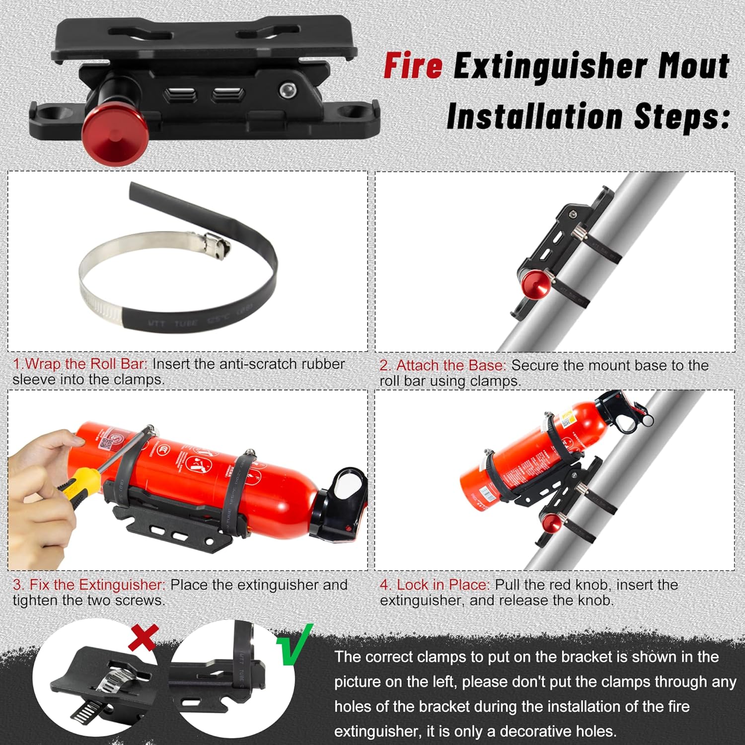 - Hassle-Free Installation - Our fire extinguisher holder comes with all the necessary hardware and easy-to-follow instructions for quick installation. You can mount it in minutes, even with limited DIY experience. This user-friendly design means you can focus more on the adventure and less on installation, making it an ideal accessory for off-road enthusiasts.