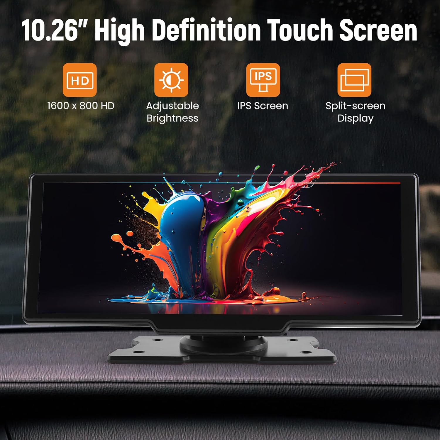 maXpeedingrods Car Stereo with Apple CarPlay & Android Auto, 10.26" Portable Car Radio with Front & Backup Camera, Audio Receiver, 2.5K Dash Cam, GPS Navigation, Mirror Link, Bluetooth