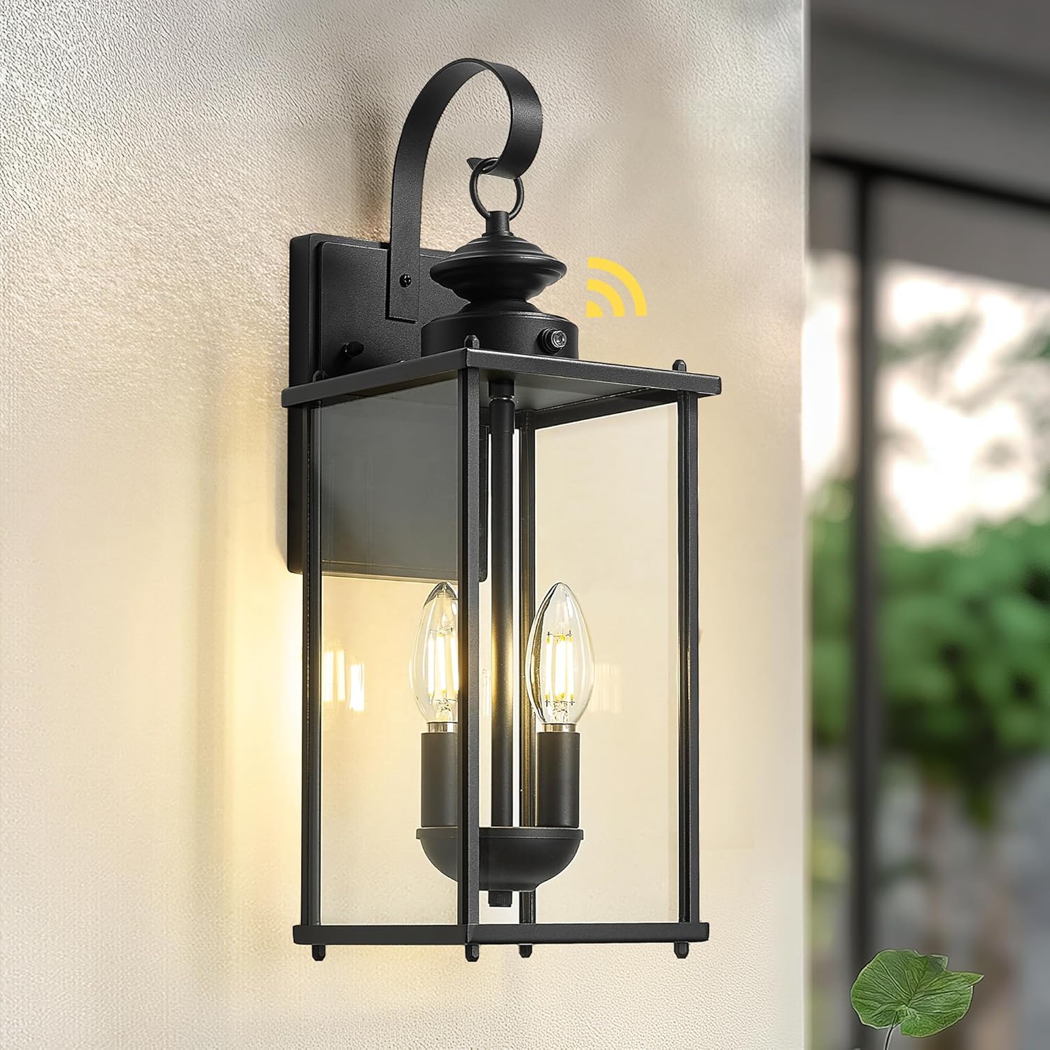 kudos Dusk to Dawn Outdoor Lighting,18.1 inch Light Sensor Porch Lights, Anti-Rust Waterproof Outdoor Wall Light for Patio, Garage, Black with Clear Glass, KDOWL02-BK-L-LC
