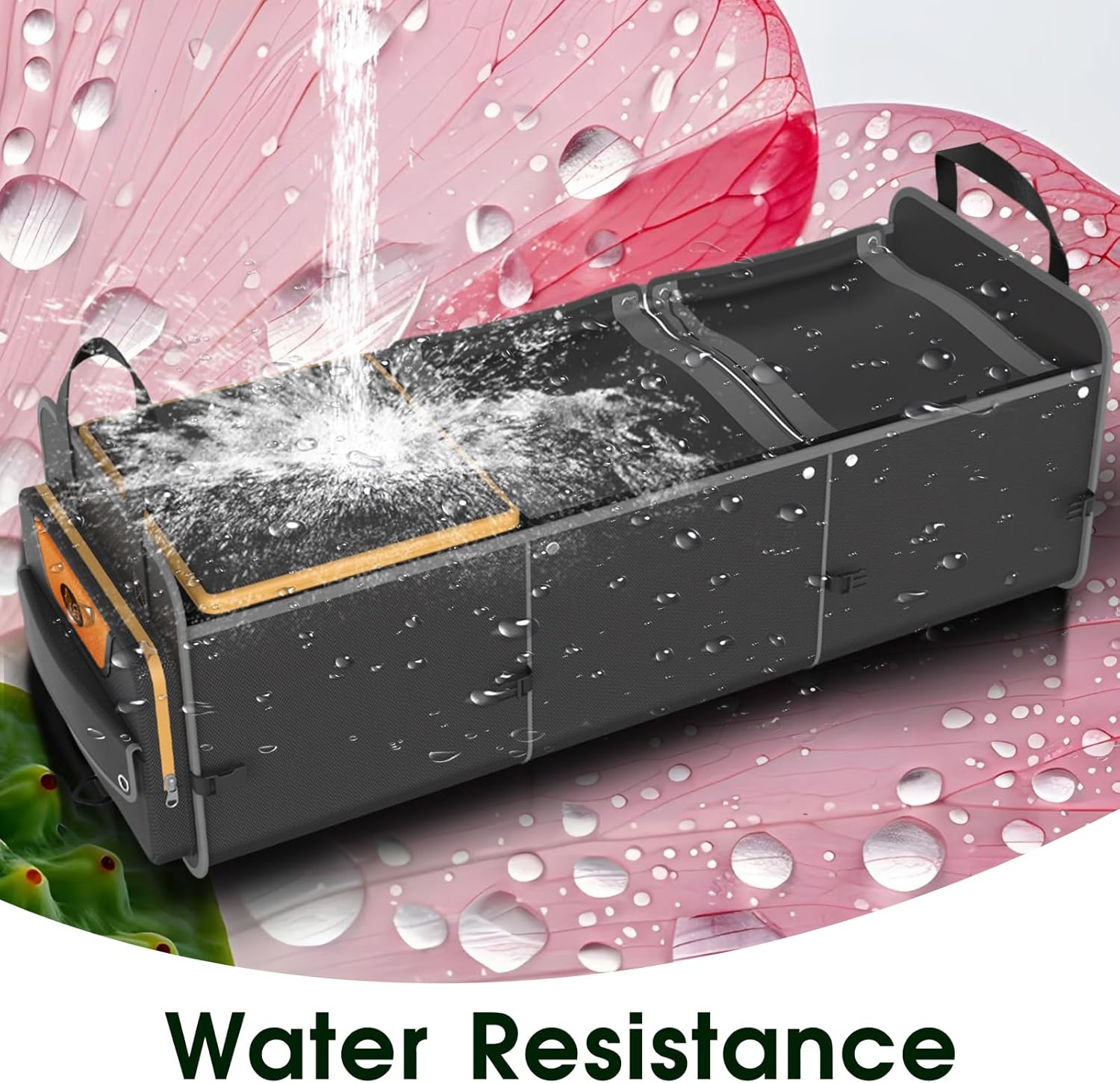 - · Fine Fabric : Made of high-quality 600D PU coated fabric, it has strong hydrophobicity and is a super water-resistant fabric. This feature can effectively protect your belongings from moisture and water damage. No matter what the weather is like, your items in the trunk organizer will stay dry and safe
