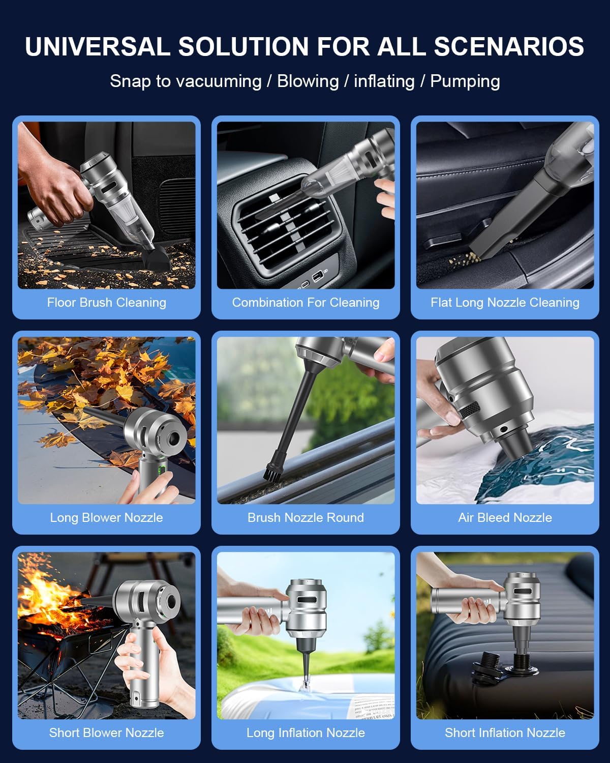 - ă4-in-1 Multi-functionăVNOST S7 Pro wireless handheld car vacuum cleaner strong suction is equipped with nine nozzle attachments that combine vacuuming, blowing, inflating and extracting functions. Whether you need to clean your car's interior, inflate your swim ring, or perform vacuuming to extract air, this car vaccum will meet your needs.
