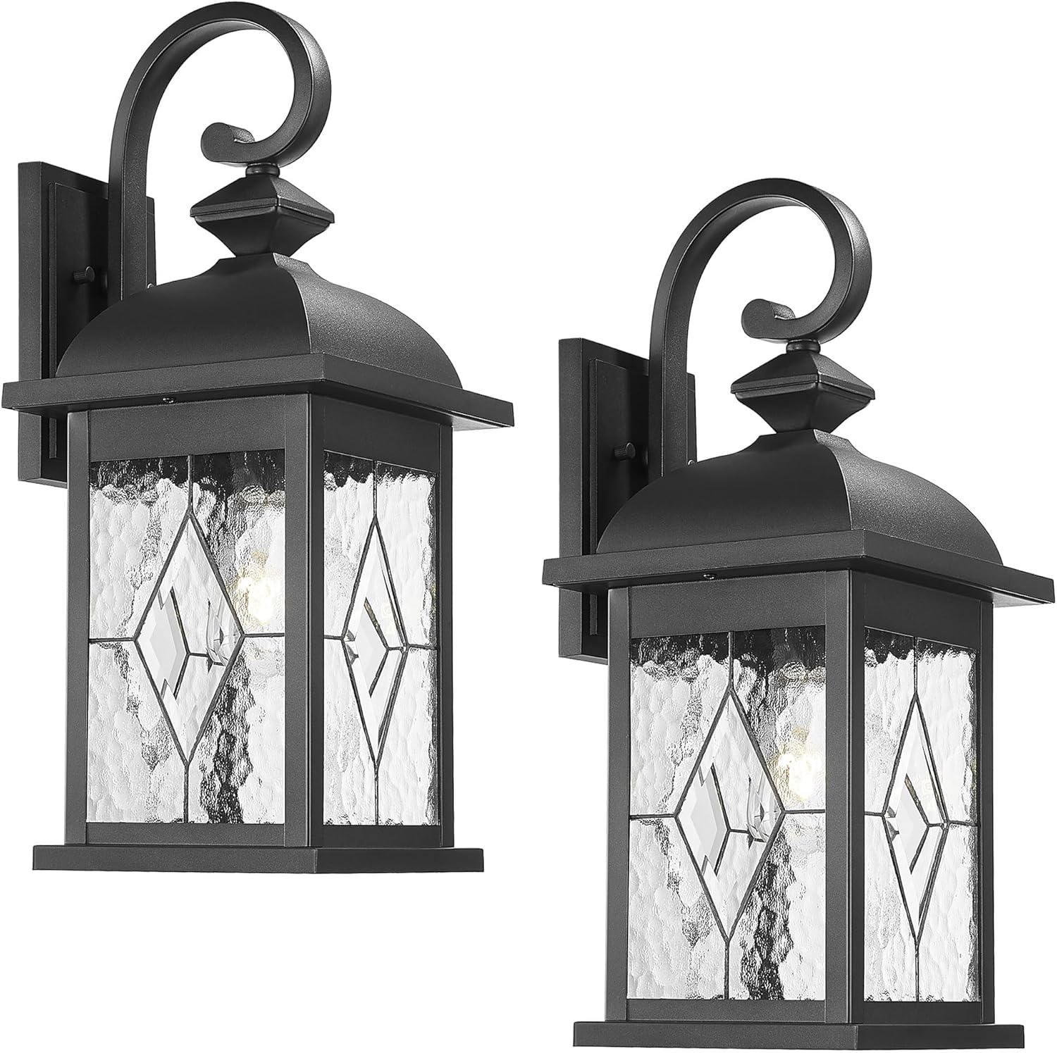 - Built to Last: This set of two black outdoor wall light features a durable metal body with a rust-resistant finish, ensuring long-lasting performance. The matte black frame and water-rippled glass shade withstand the elements, providing reliable outdoor lighting.